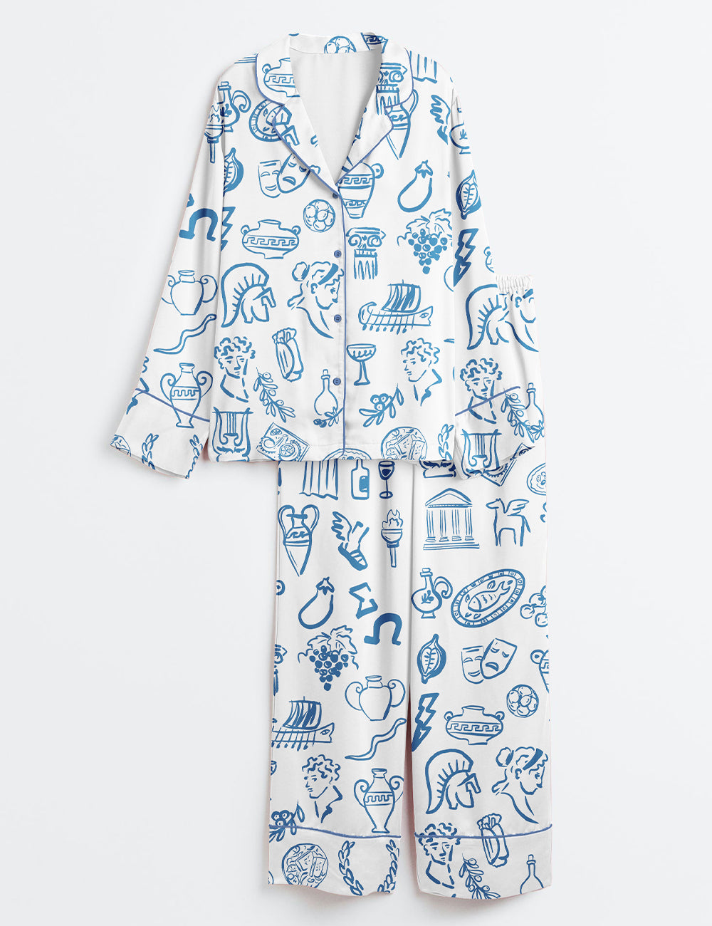 Women’s Hand Drawn Greek Food Greece Bundle Of Food Greek Wedding Long Sleeve Satin Pajama Set