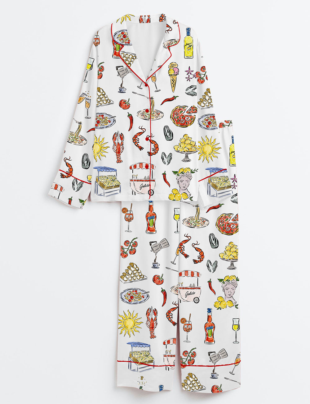 Women’s Italian Dinner Wedding And Bachelorette Party Italian Summer Food Long Sleeve Satin Pajama Set
