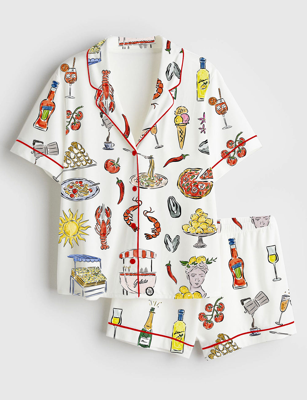Women’s Italian Dinner Wedding And Bachelorette Party Italian Summer Food Short Sleeve Satin Pajama Set