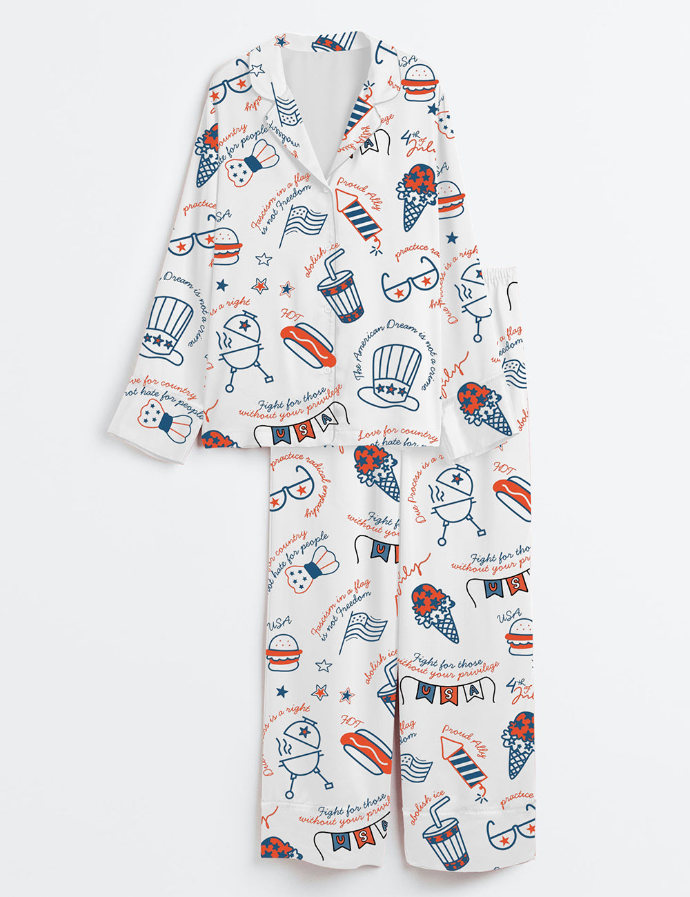 Women’s Liberal Fourth Of July Anti Trump Long Sleeve Satin Pajama Set
