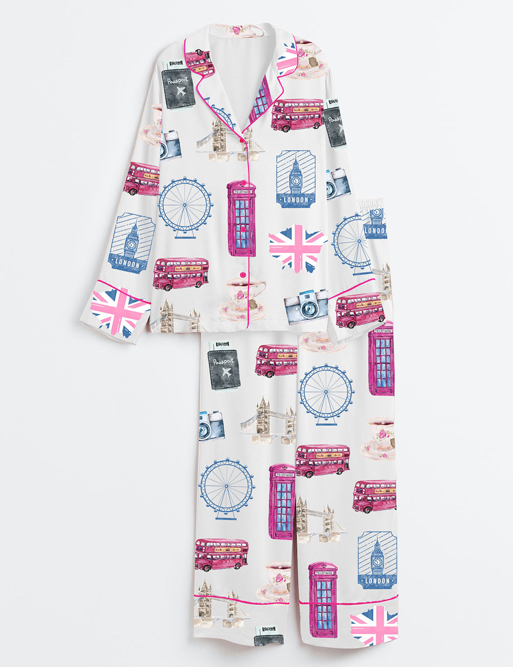 Women’s London Britain Girls Trip Amalfi Coast Lake Como Travel Long Sleeve Satin Pajama Set