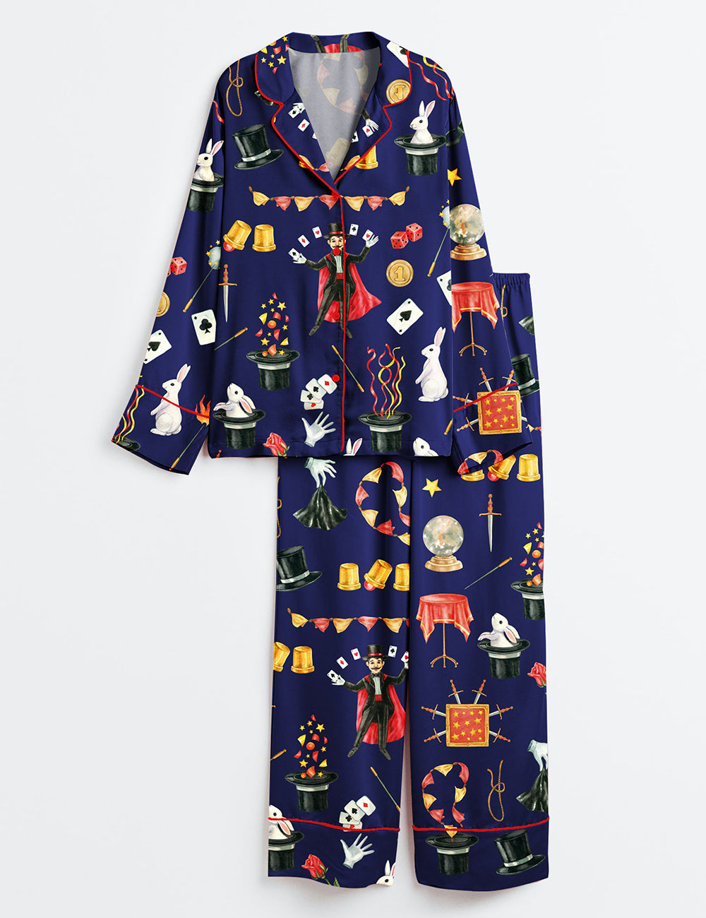 Women’s Magic Show Card Tricks Long Sleeve Satin Pajama Set