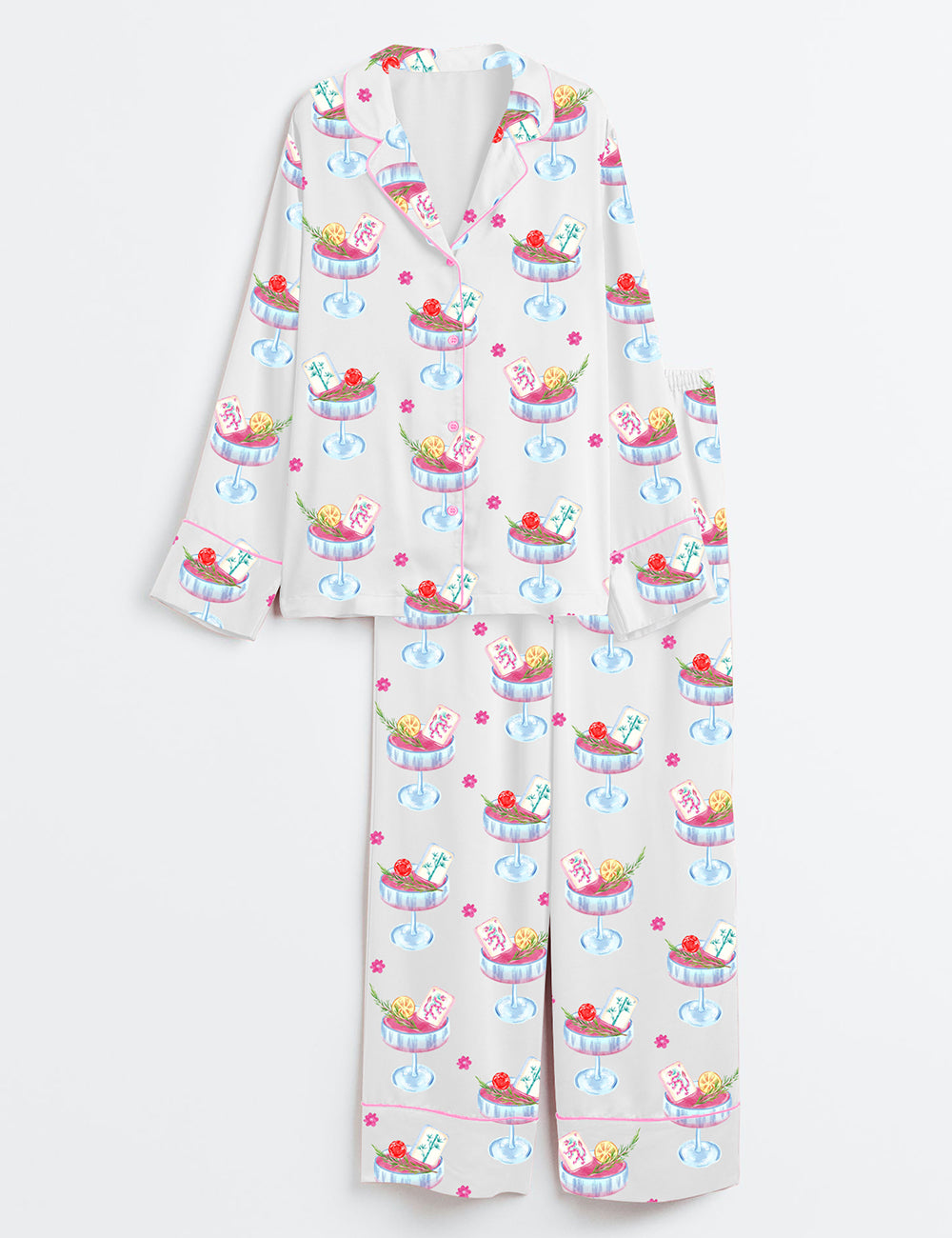 Women’s Mahjong Party Long Sleeve Satin Pajama Set