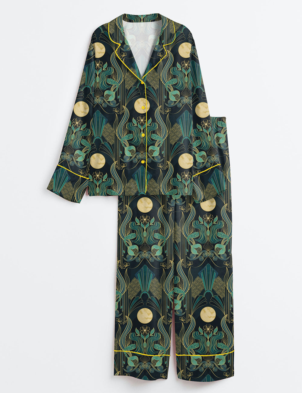 Women’s Mermaid In Moonlight Long Sleeve Satin Pajama Set
