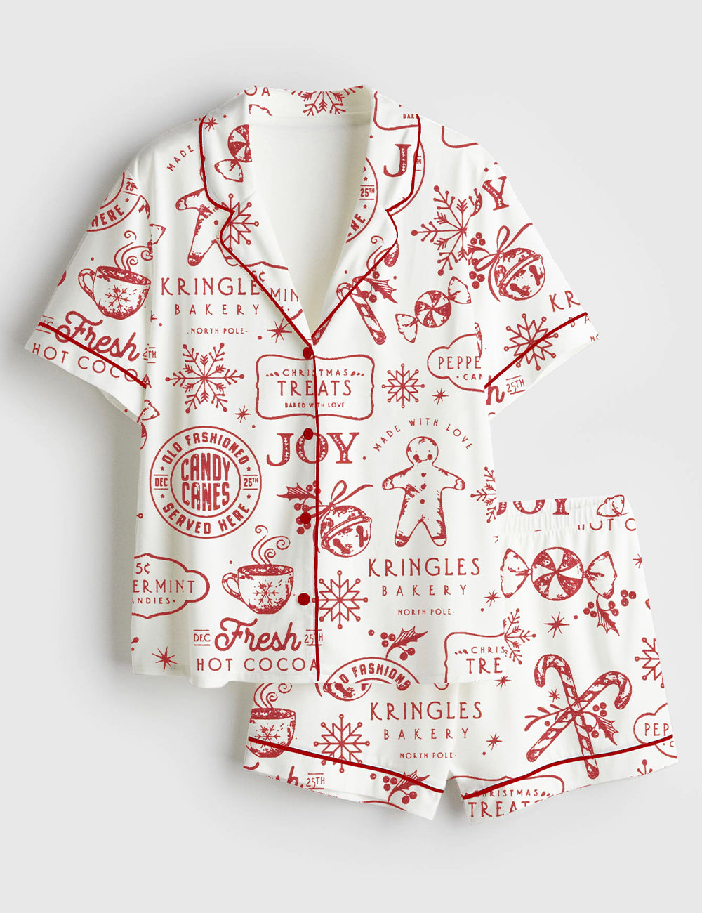 Women’s Merry Little Christmas Treats Cookies Short Sleeve Satin Pajama Set