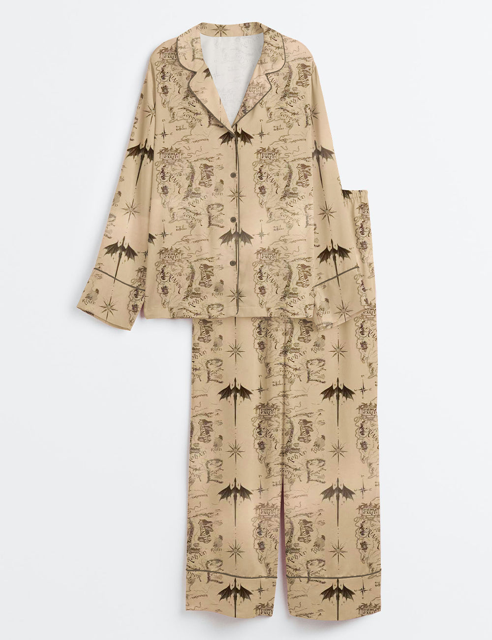 Women’s Middle Earth Map Print Lord Of The Rings Long Sleeve Satin Pajama Set