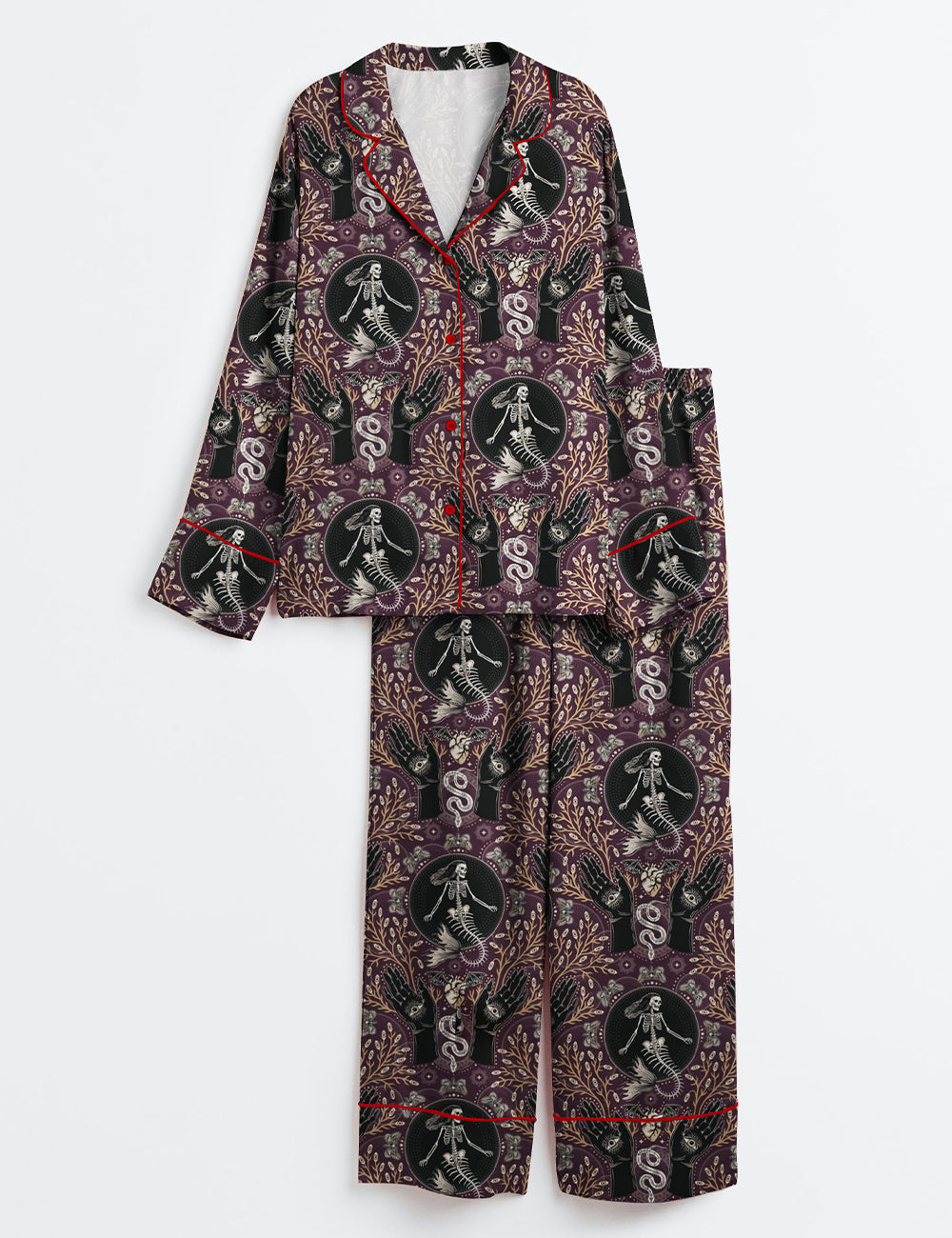 Women’s Phantasmagoria Mermaid Skeleton Hands Eyes Snake Scary Plants And Moths Halloween Long Sleeve Satin Pajama Set