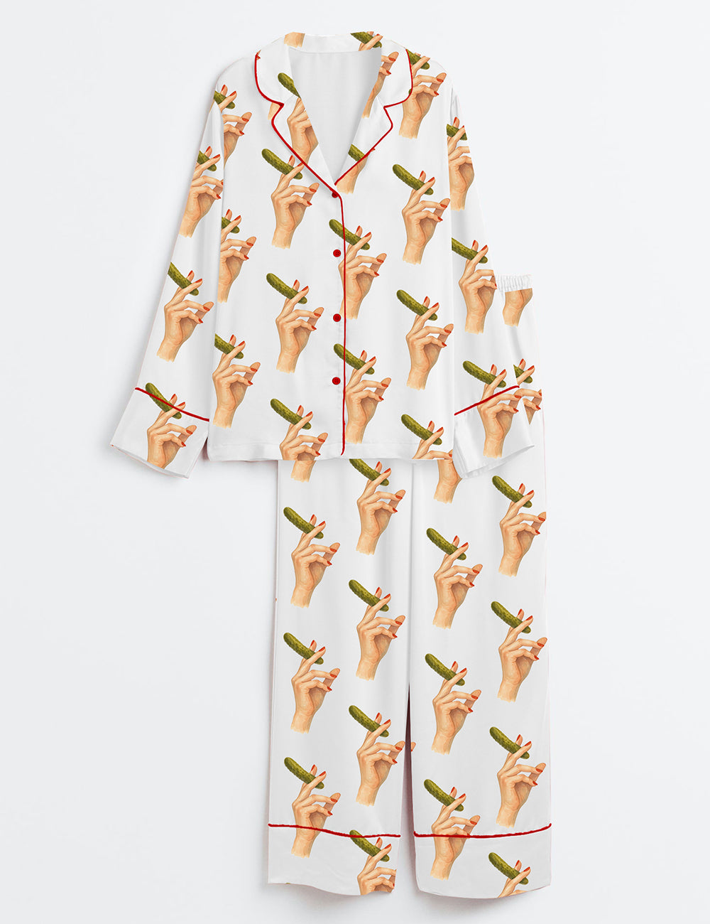 Women’s Pickle Lovers Long Sleeve Satin Pajama Set