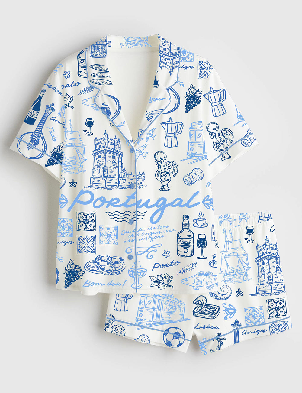 Women’s Portugal Whimsical Style Illustration Short Sleeve Satin Pajama Set