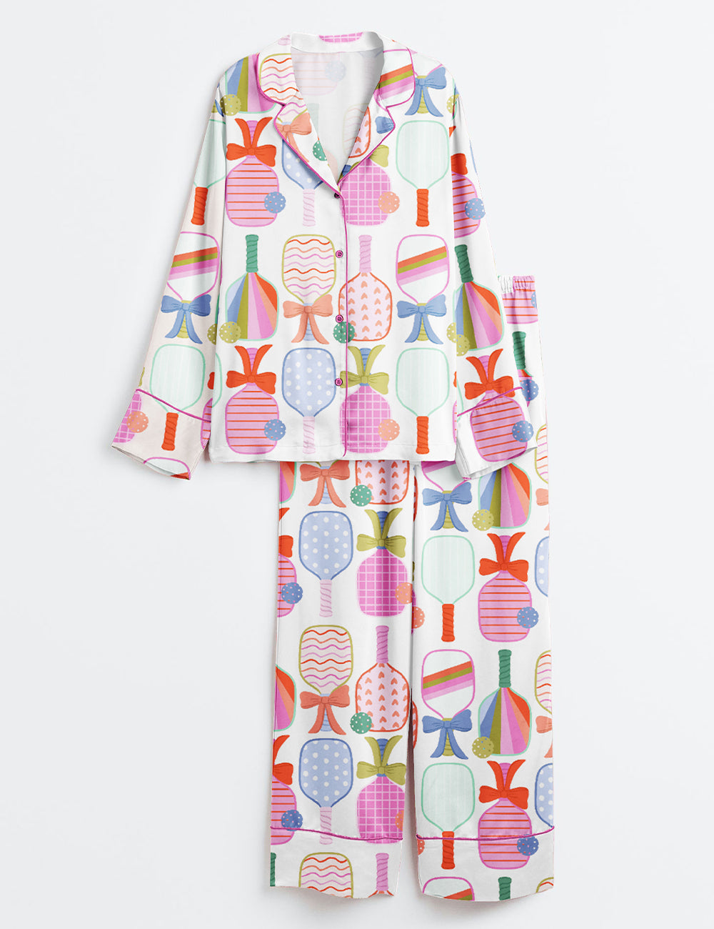 Women’s Preppy Pickle Paddle Pickleball Long Sleeve Satin Pajama Set