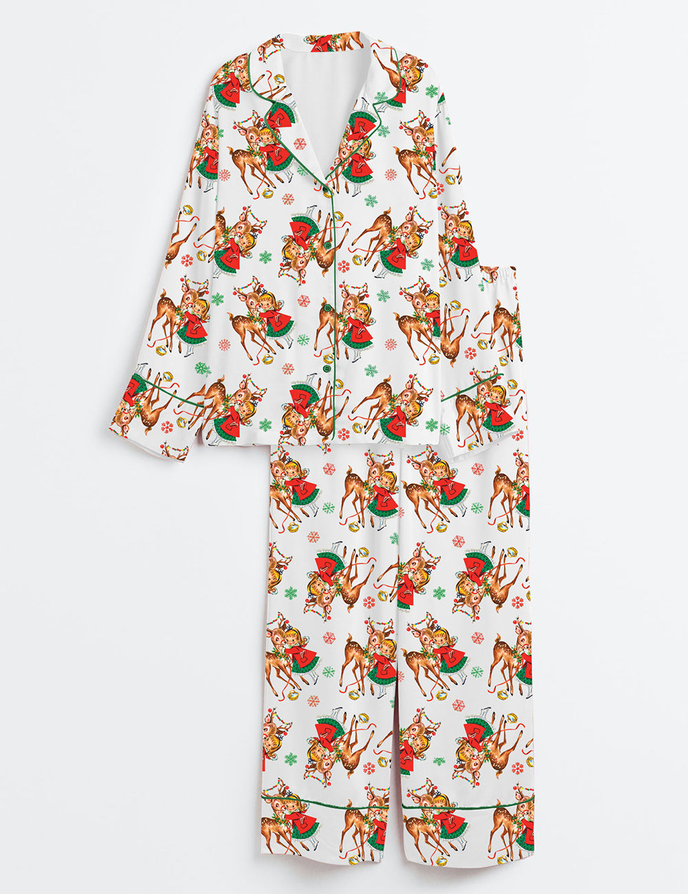 Women’s Retro 1950s Christmas Vintage Reindeer Long Sleeve Satin Pajama Set
