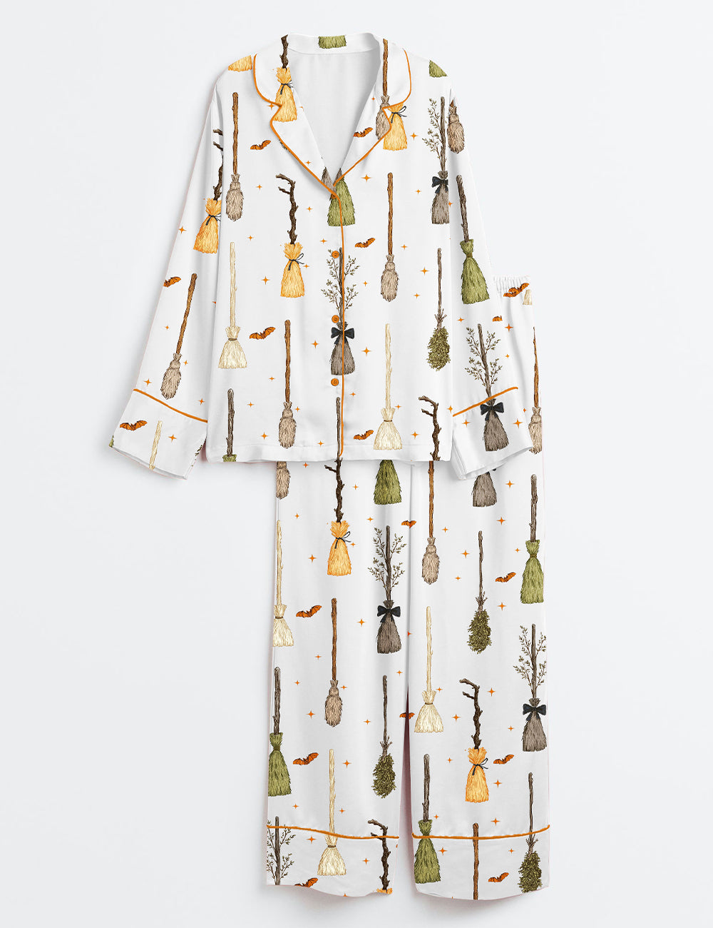 Women’s Retro A Girl’s Gotta Have Options Halloween Witches Long Sleeve Satin Pajama Set
