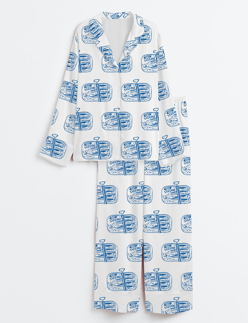 Women’s Sardines Tinned Fish Portugal Vintage Sardine Coastal Aesthetic Europe Travel Print Long Sleeve Satin Pajama Set