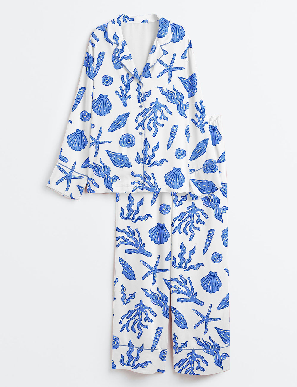 Women’s Summer Beach Coastal Life Long Sleeve Satin Pajama Set