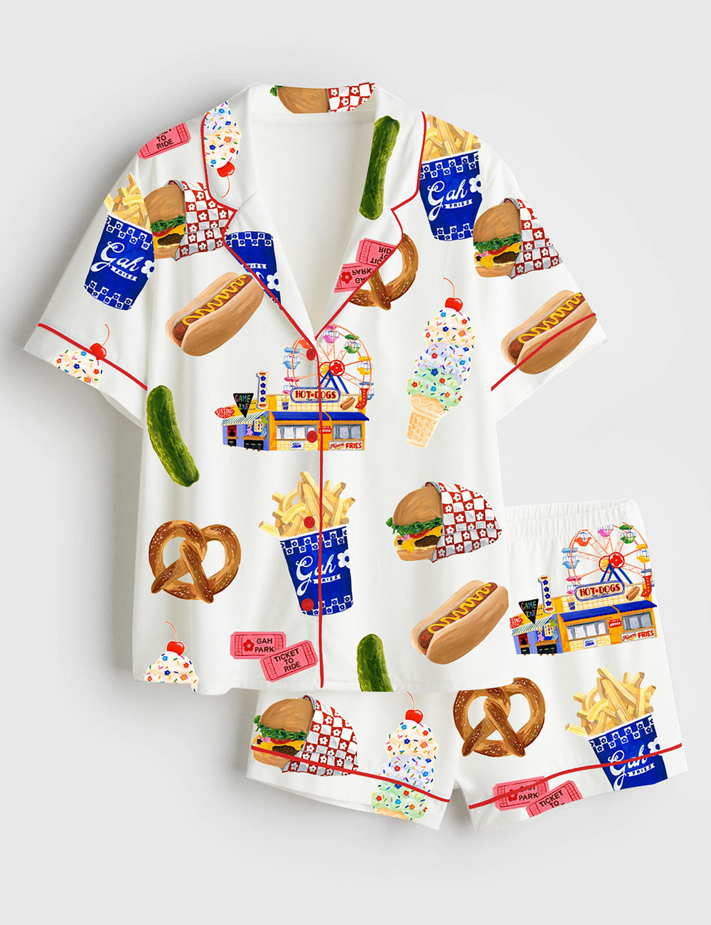 Women’s Summer Vibes Boardwalk Collection Short Sleeve Satin Pajama Set