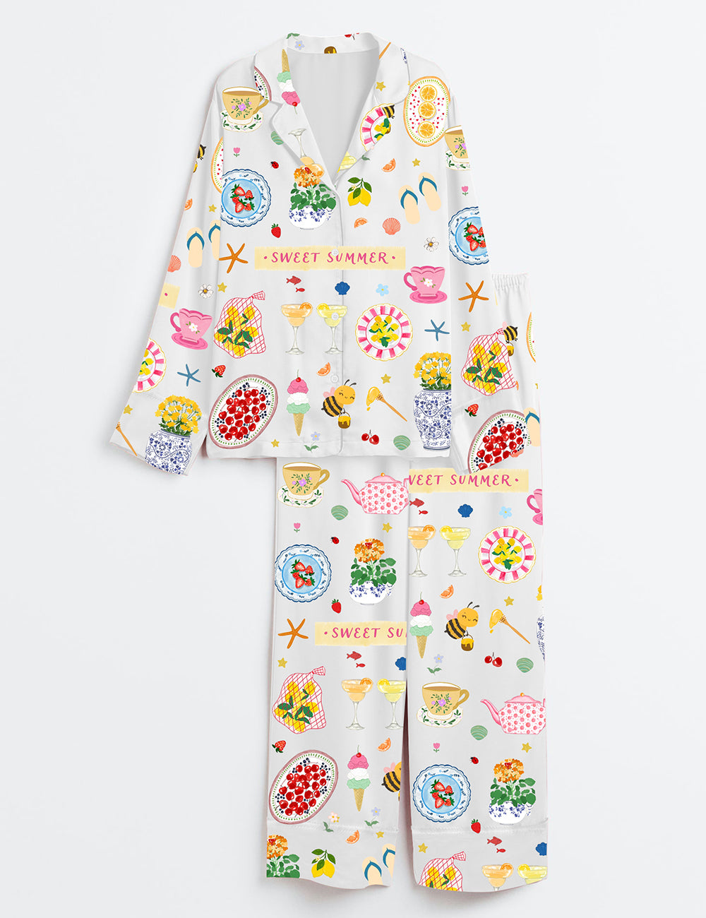 Women’s Sweet Summer Long Sleeve Satin Pajama Set