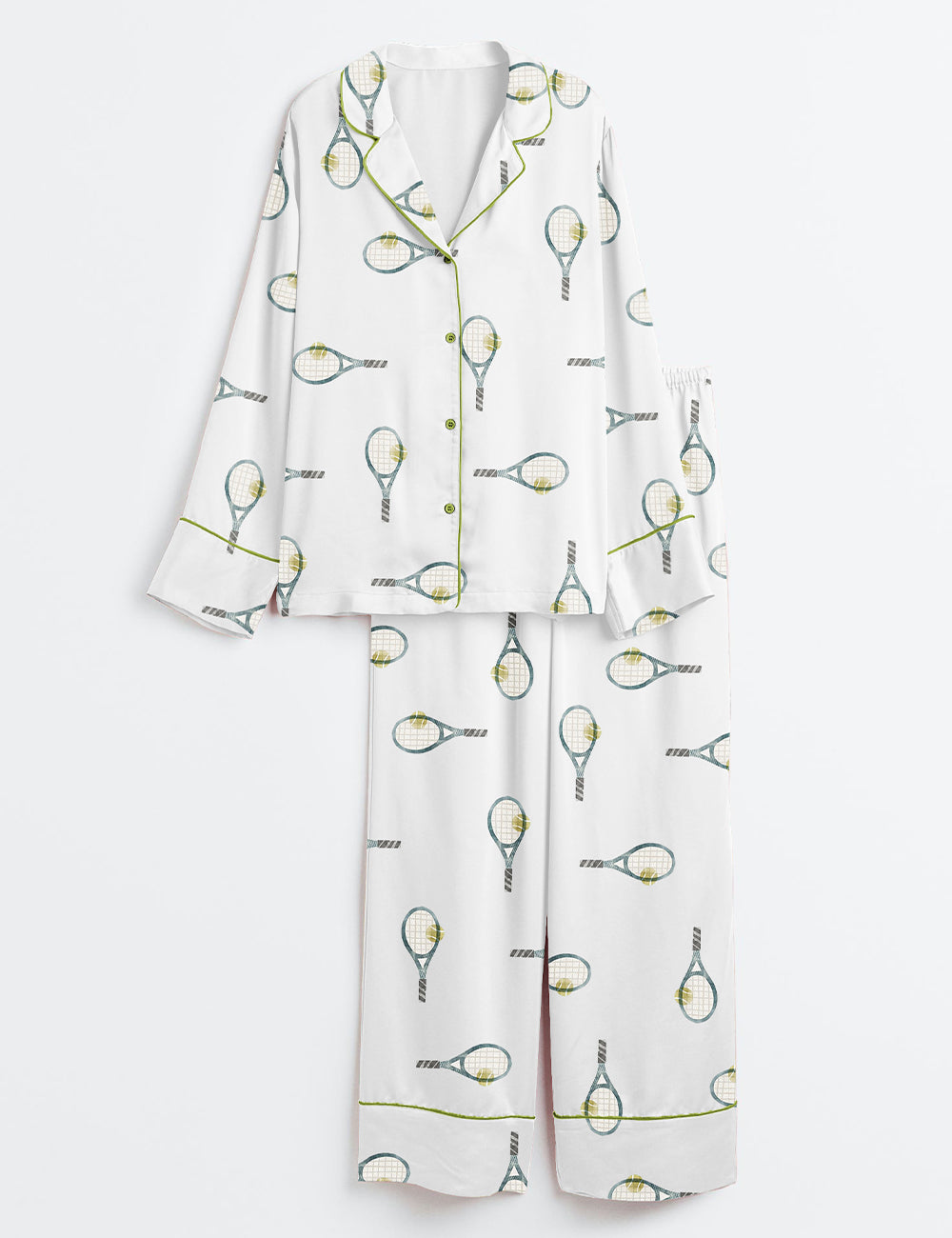 Women’s Tennis Rackets Long Sleeve Satin Pajama Set