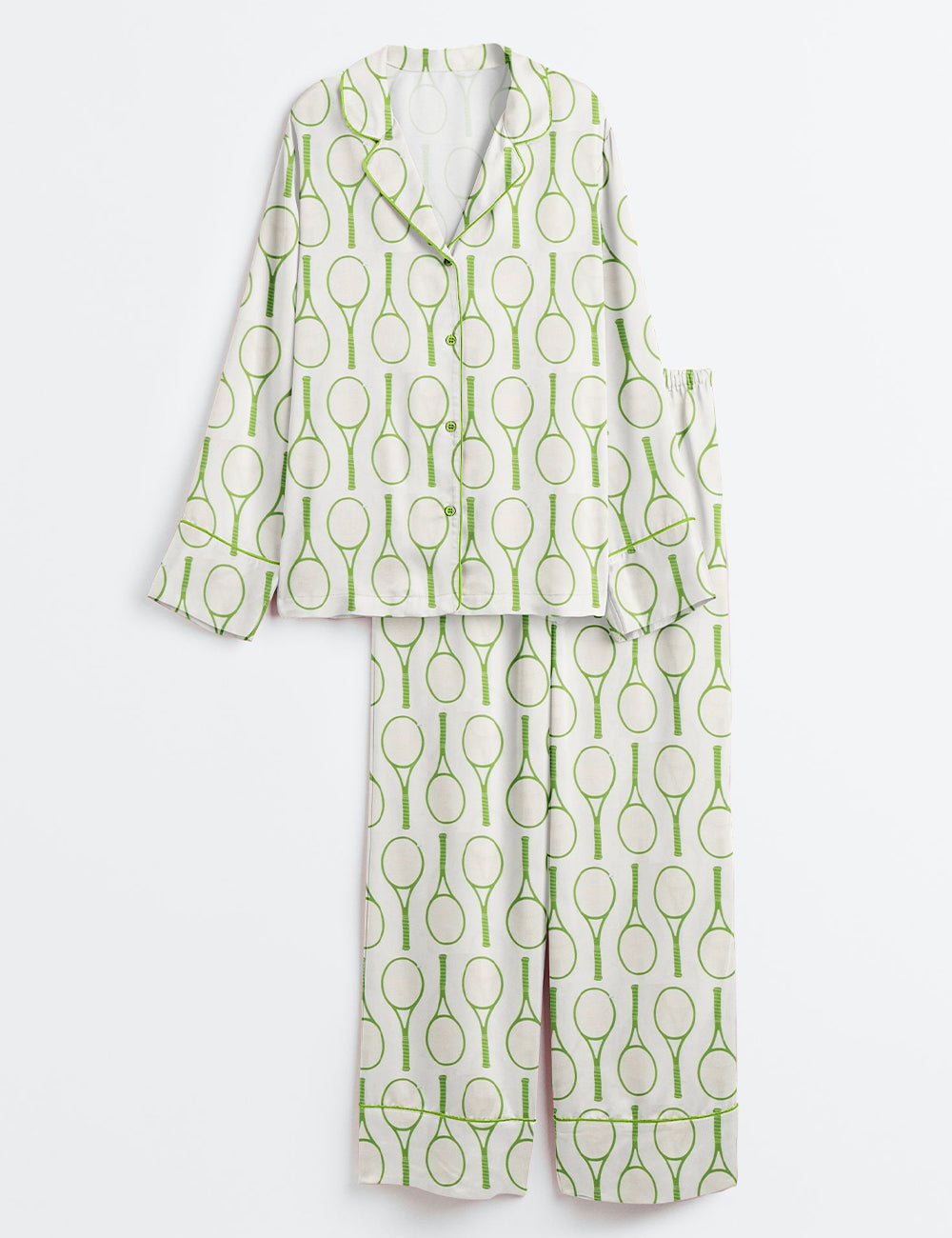 Women’s Tennis Time Tennis Lover Tennis Player Game Day Print Long Sleeve Satin Pajama Set