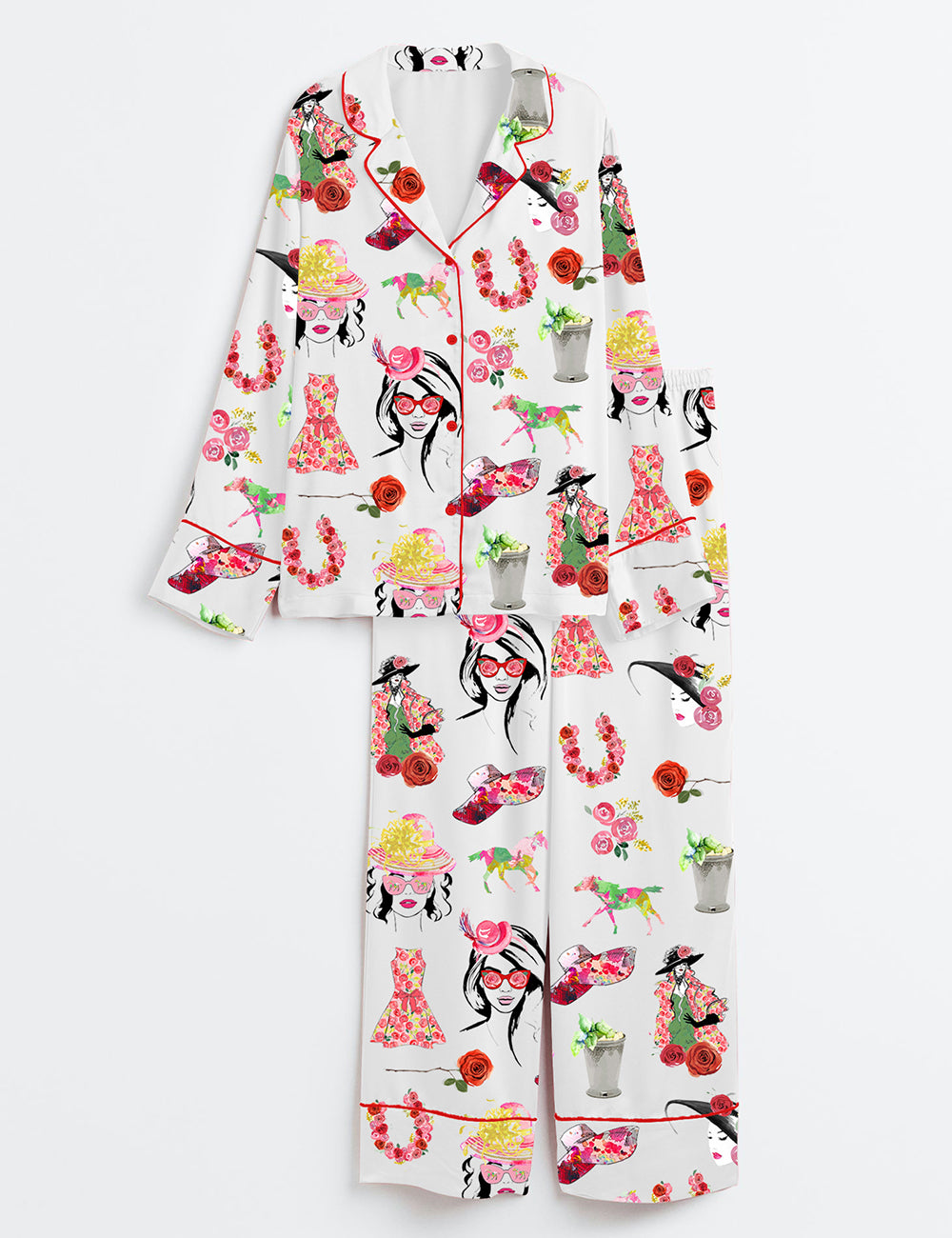 Women’s The Kentucky Derby Derby Fashion Planner Girl Rose Horse Western Long Sleeve Satin Pajama Set