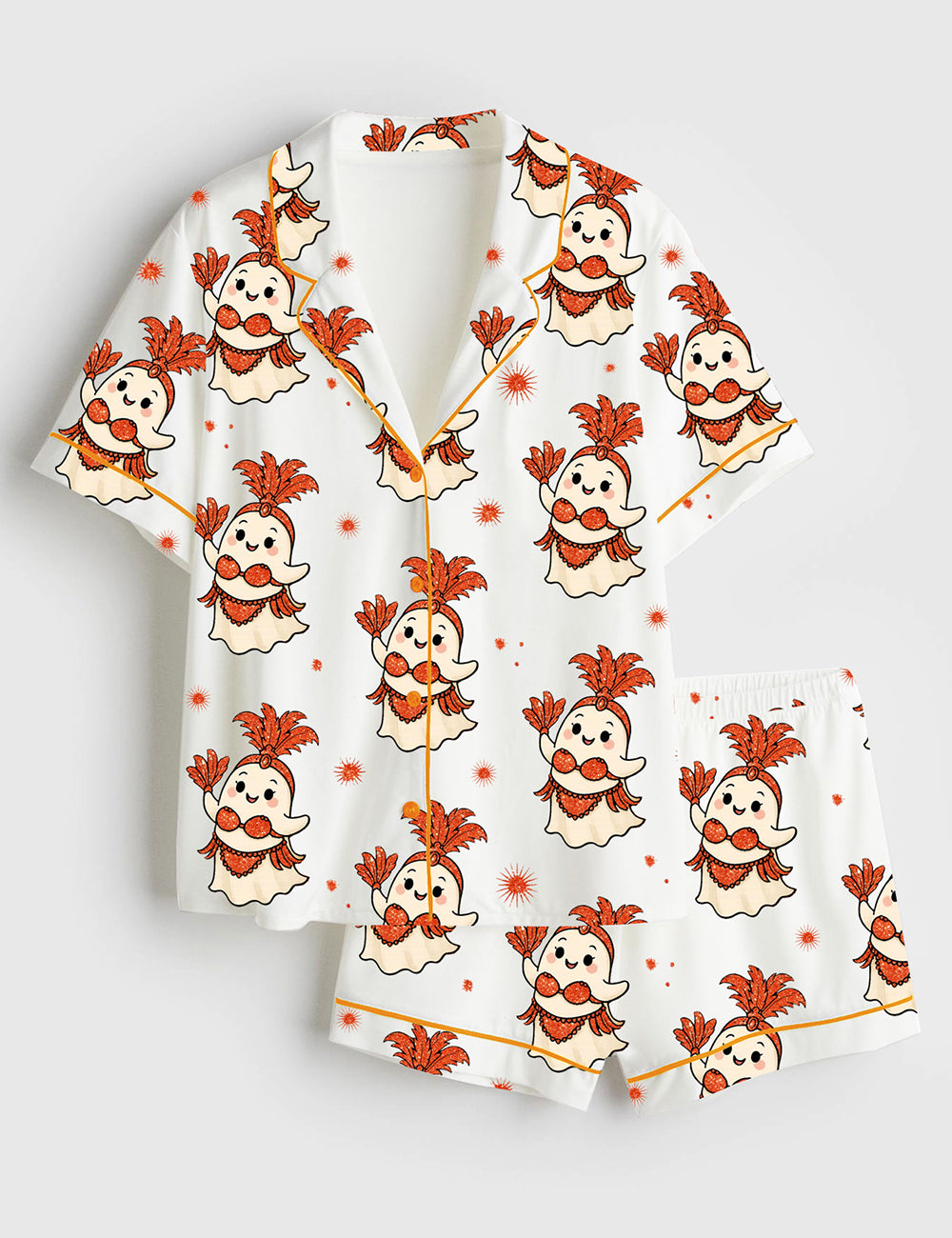 Women’s The Life Of A Showghoul Halloween Ghost Showgirl Era Short Sleeve Satin Pajama Set