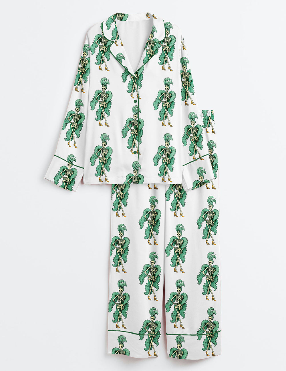 Women’s The Life Of A Showghoul Halloween Skeleton Showgirl Long Sleeve Satin Pajama Set