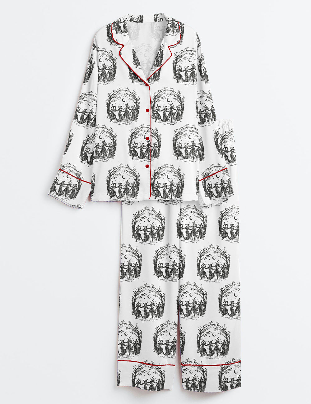 Women’s Vintage Girls Will Be Girls Witch Halloween Witchy Vibes Long Sleeve Satin Pajama Set