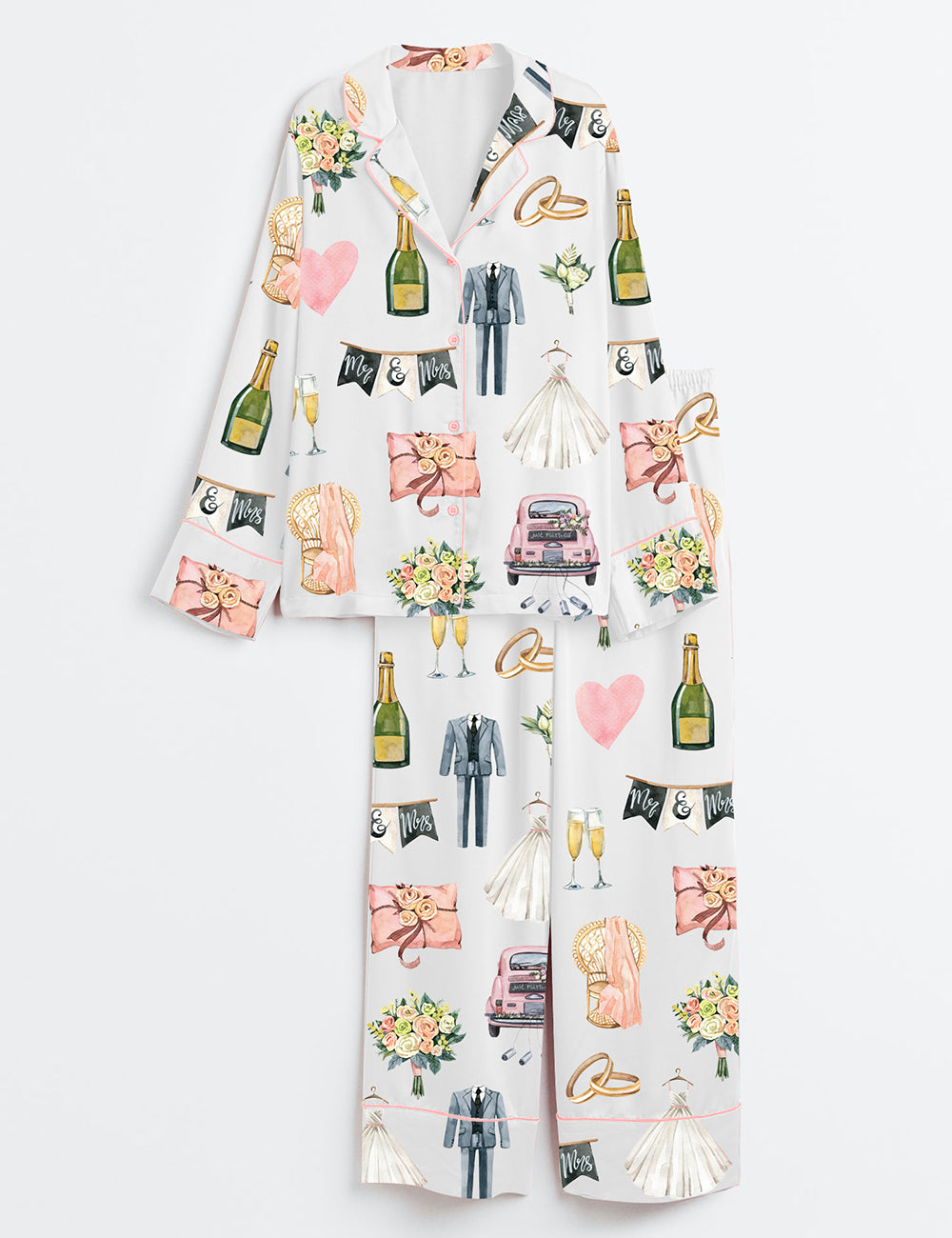 Women’s Wedding Day Anniversary Long Sleeve Satin Pajama Set