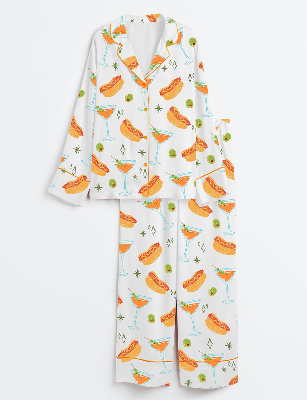 Women’s Weenies And Tinis Bachelorette Party Martini Social Club Print Long Sleeve Satin Pajama Set