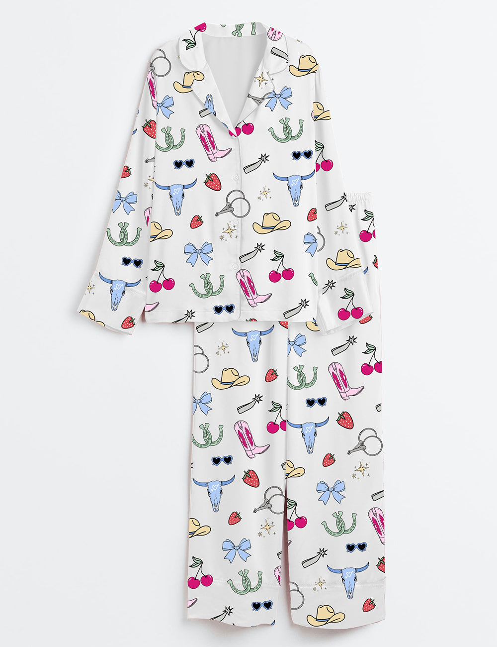 Women’s Wild West Sassy Cowgirl Boots Coquette Cowgirl Western Country Music Long Sleeve Satin Pajama Set