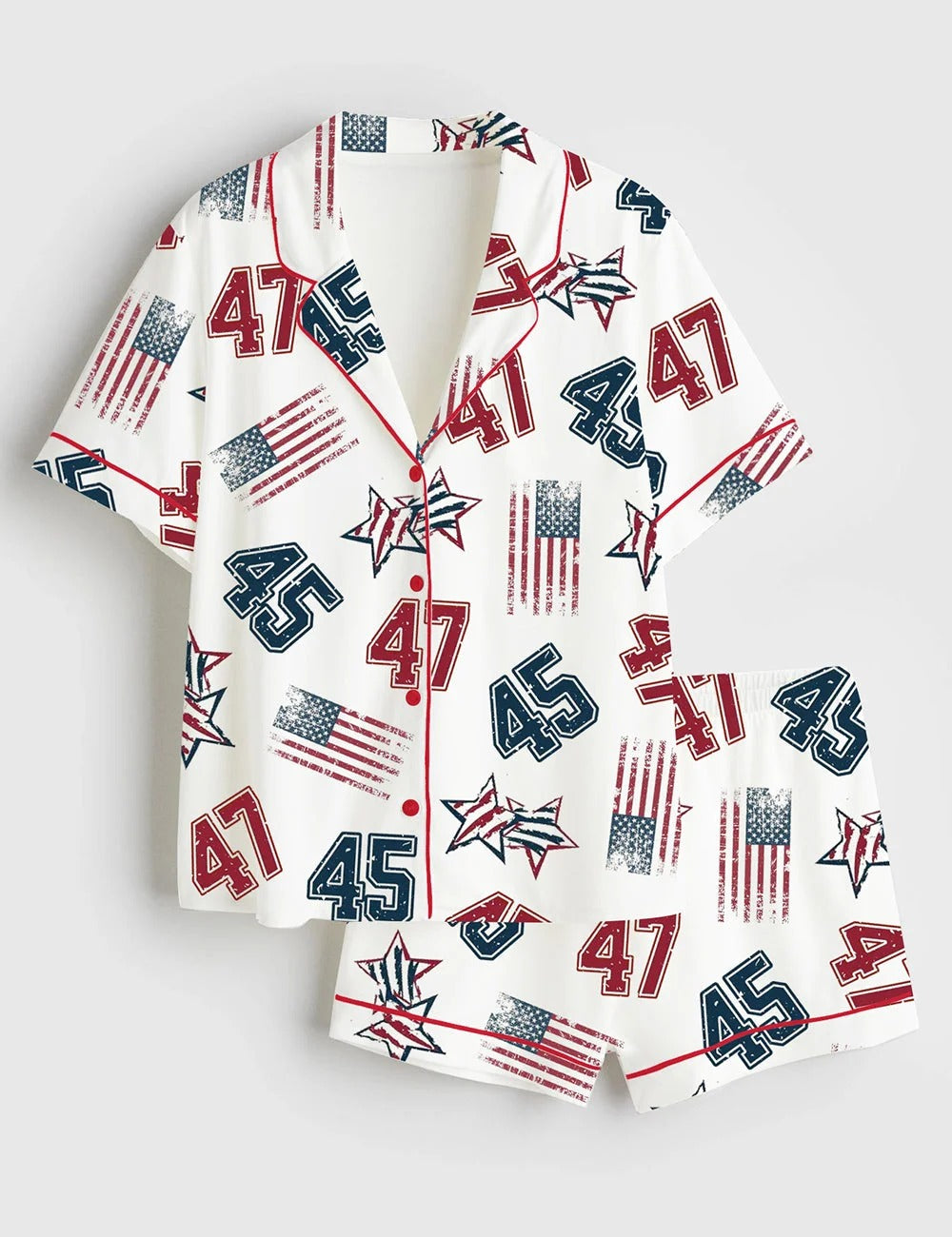 Women's America 45 47 Short Sleeve Satin Pajama Set