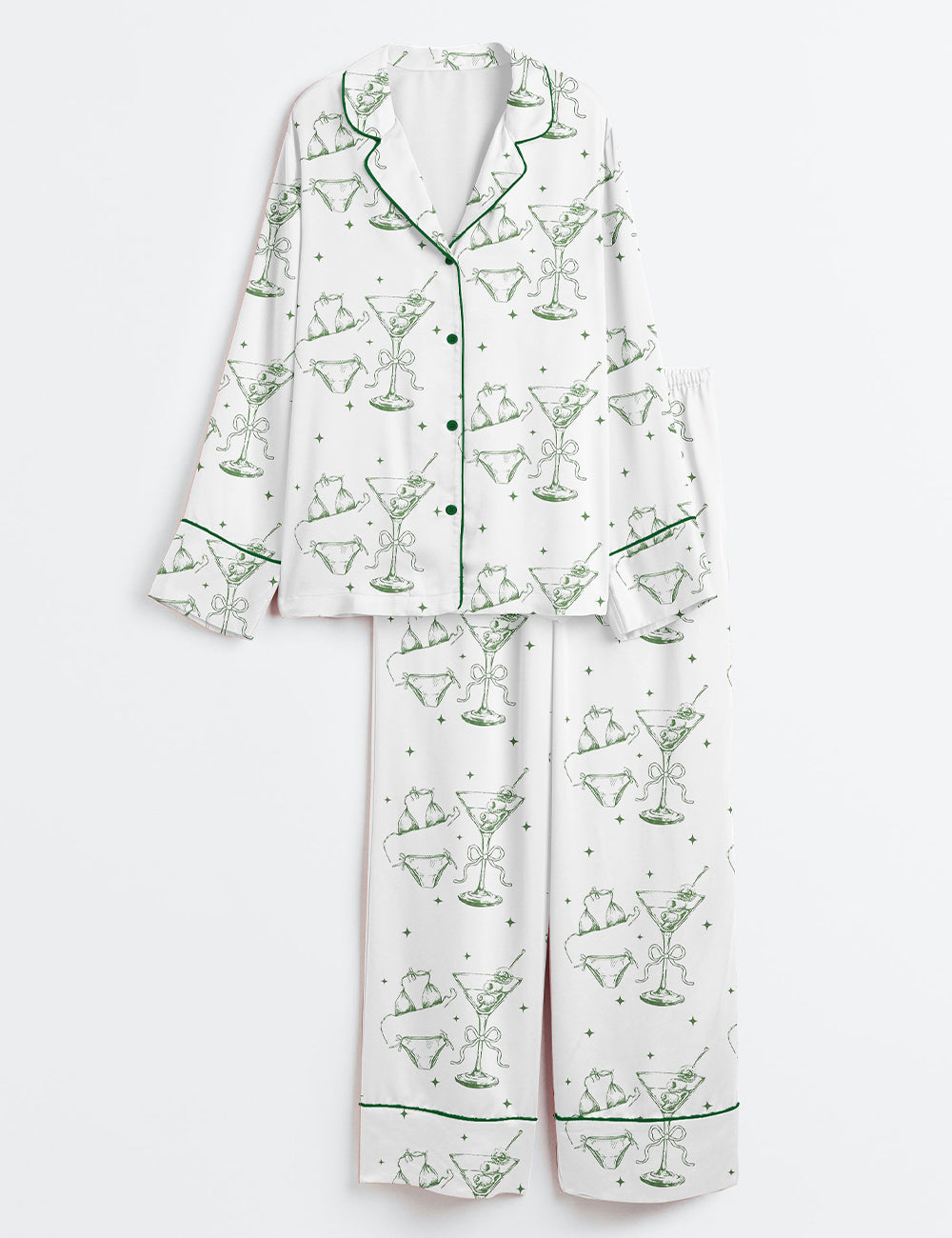 Women's Bikinis And Martinis Bachelorette Long Sleeve Satin Pajama Set