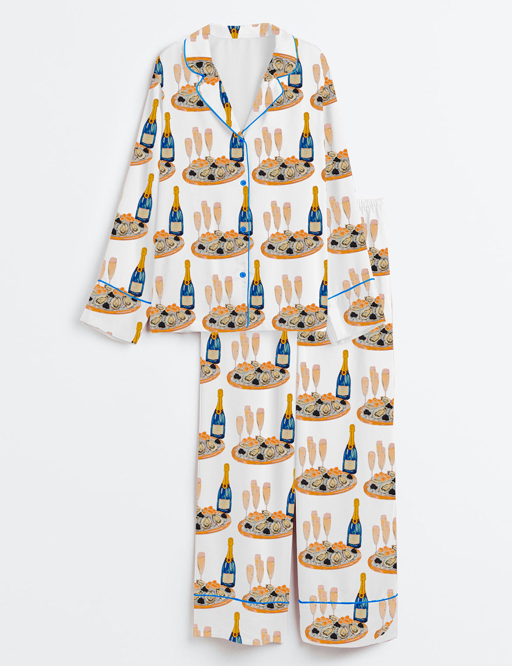 Women's Champagne Glasses Caviar Long Sleeve Satin Pajama Set