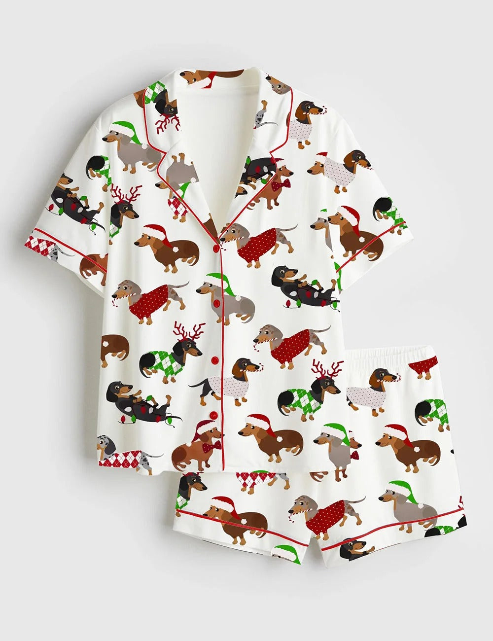 Women's Christmas Dachshund Short Sleeve Satin Pajama Set
