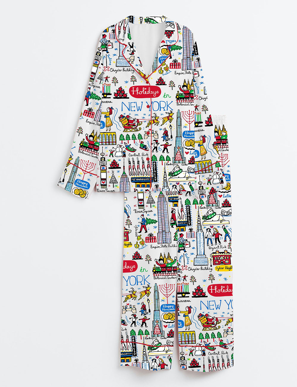 Women's Christmas Holidays In New York Long Sleeve Satin Pajama Set