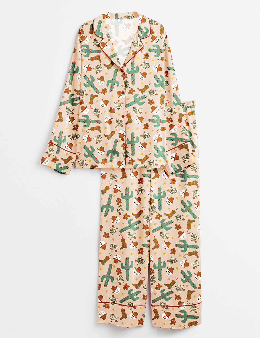 Women's Christmas Western Cowboy Boots Long Sleeve Satin Pajama Set