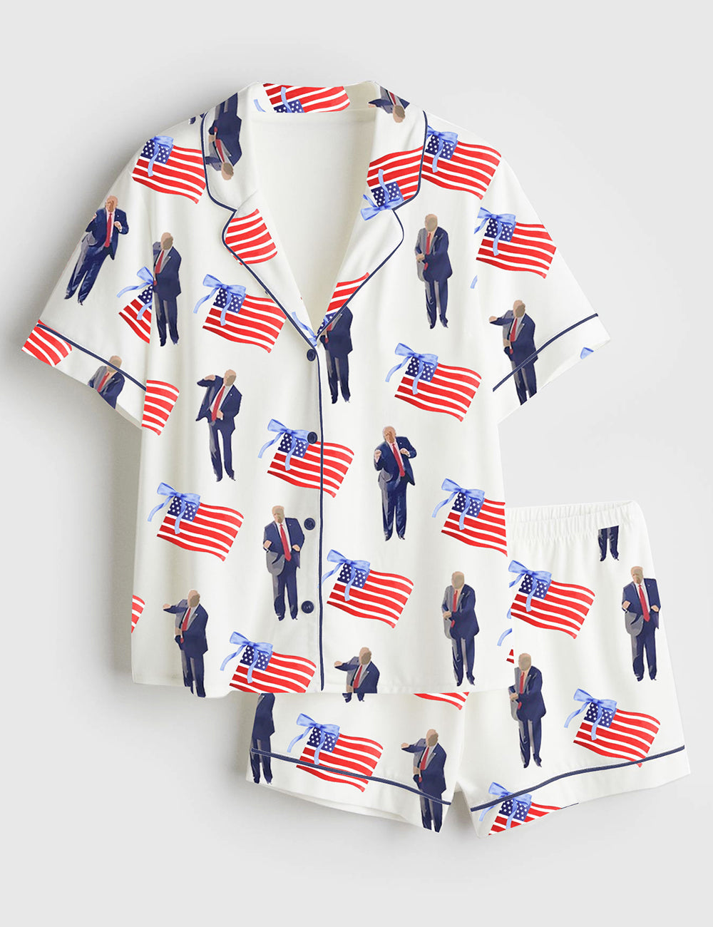 Women's Coquette Bow America 2024 Satin Pajama Set