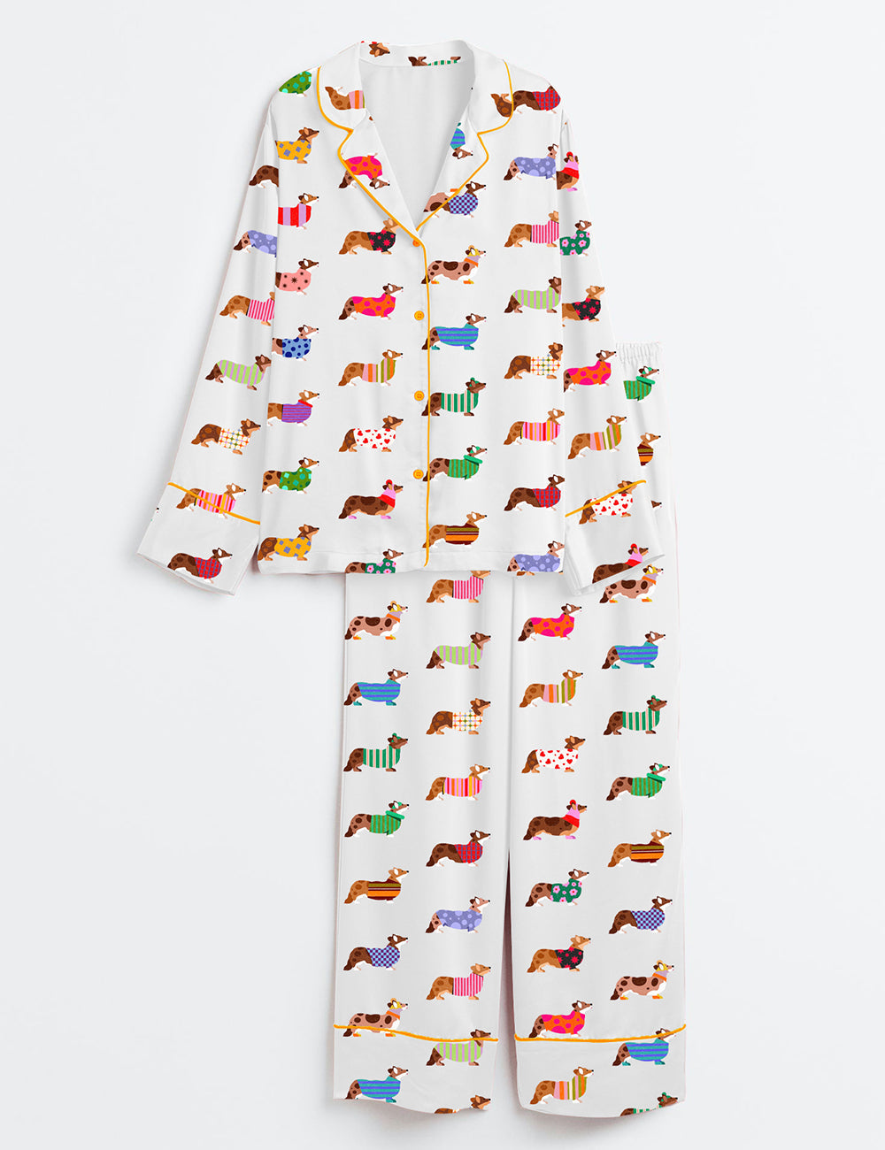Women's Corgi Love Long Sleeve Satin Pajama Set