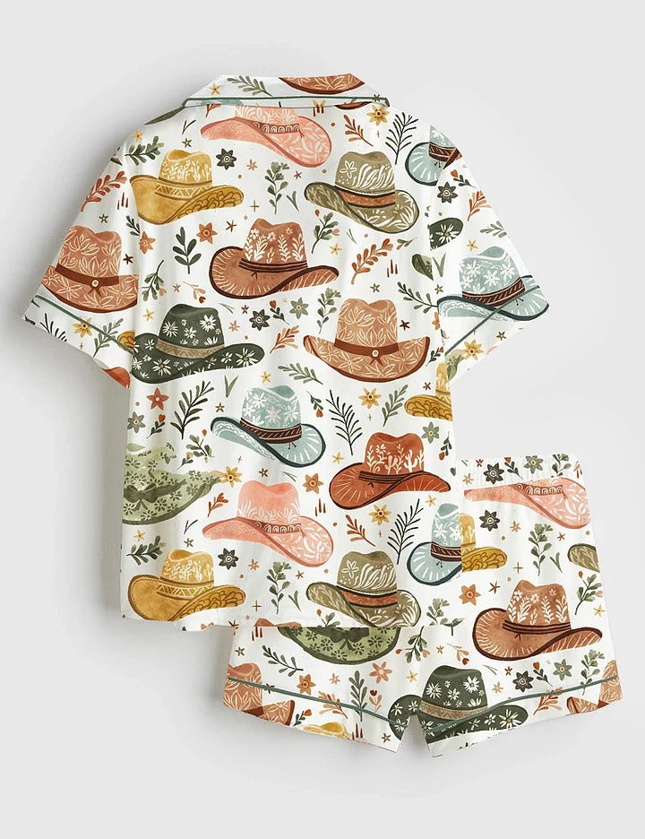 Women's Cowboy Hats Whimsical West Theme Short Sleeve Satin Pajama Set