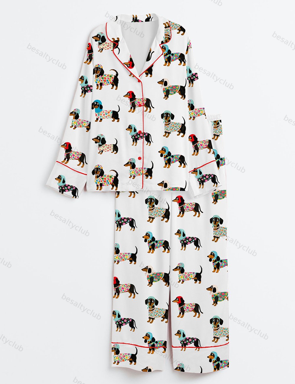 Women's Dachshund Weiner Dog Long Sleeve Satin Pajama Set
