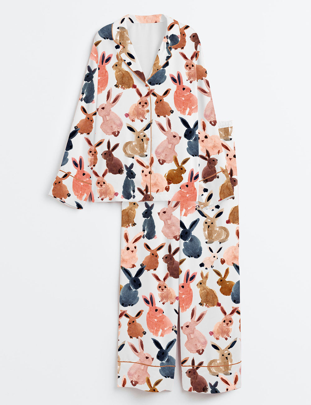 Women's Easter Bunny Long Sleeve Satin Pajama Set
