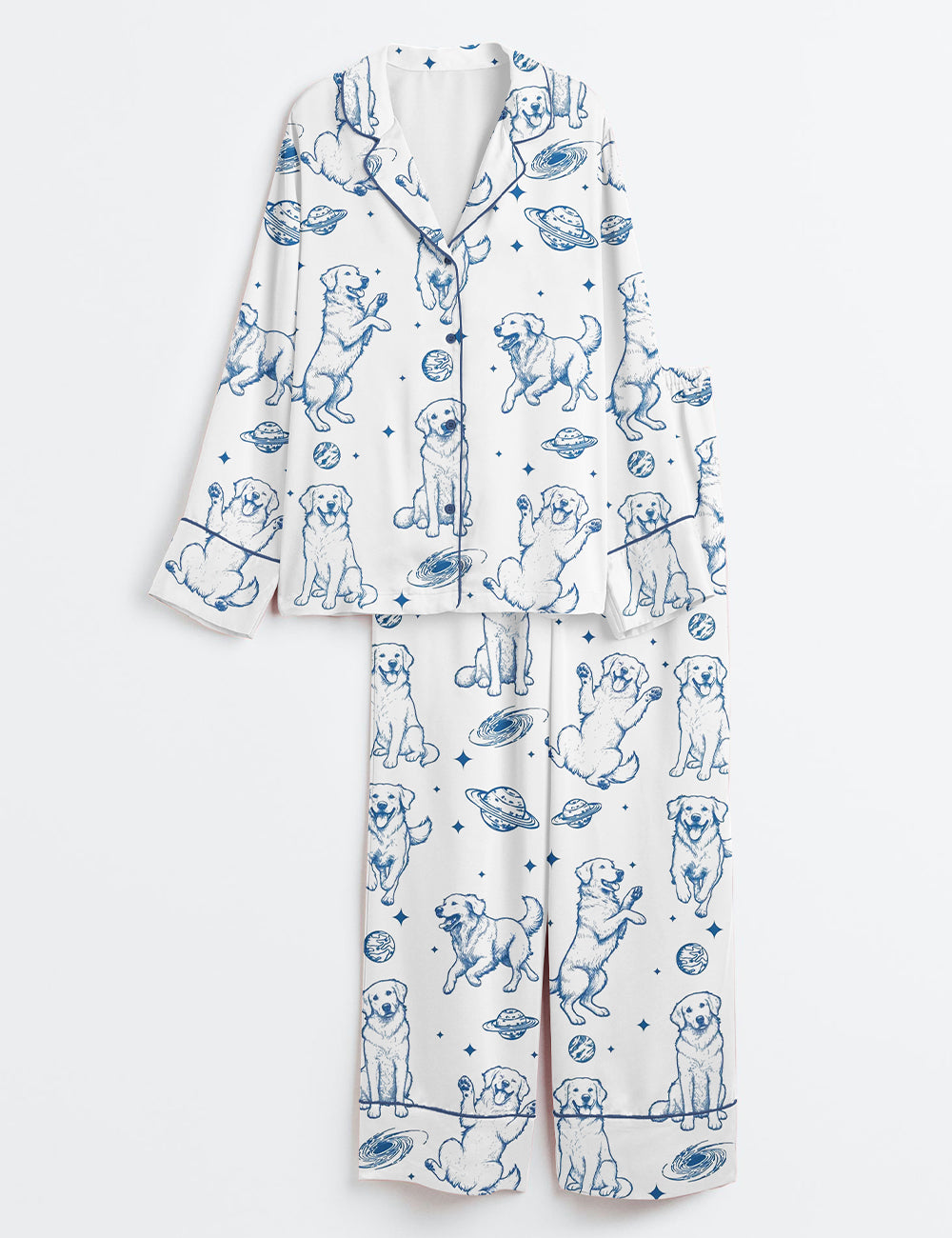 Women's Golden Retriever In Space Dog Lover Long Sleeve Satin Pajama Set