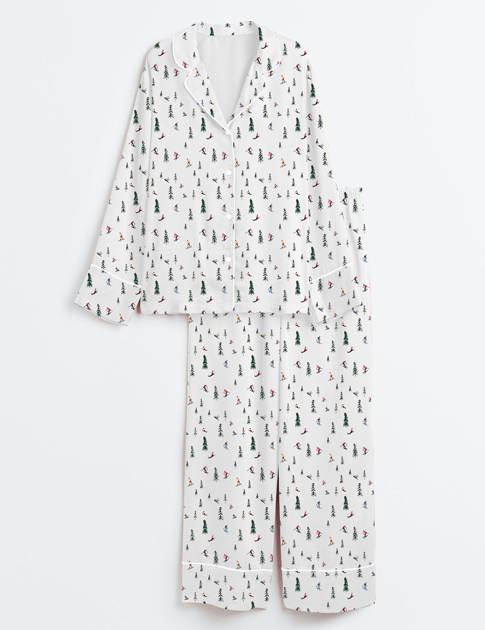 Women's Holiday Ski Long Sleeve Satin Pajama Set