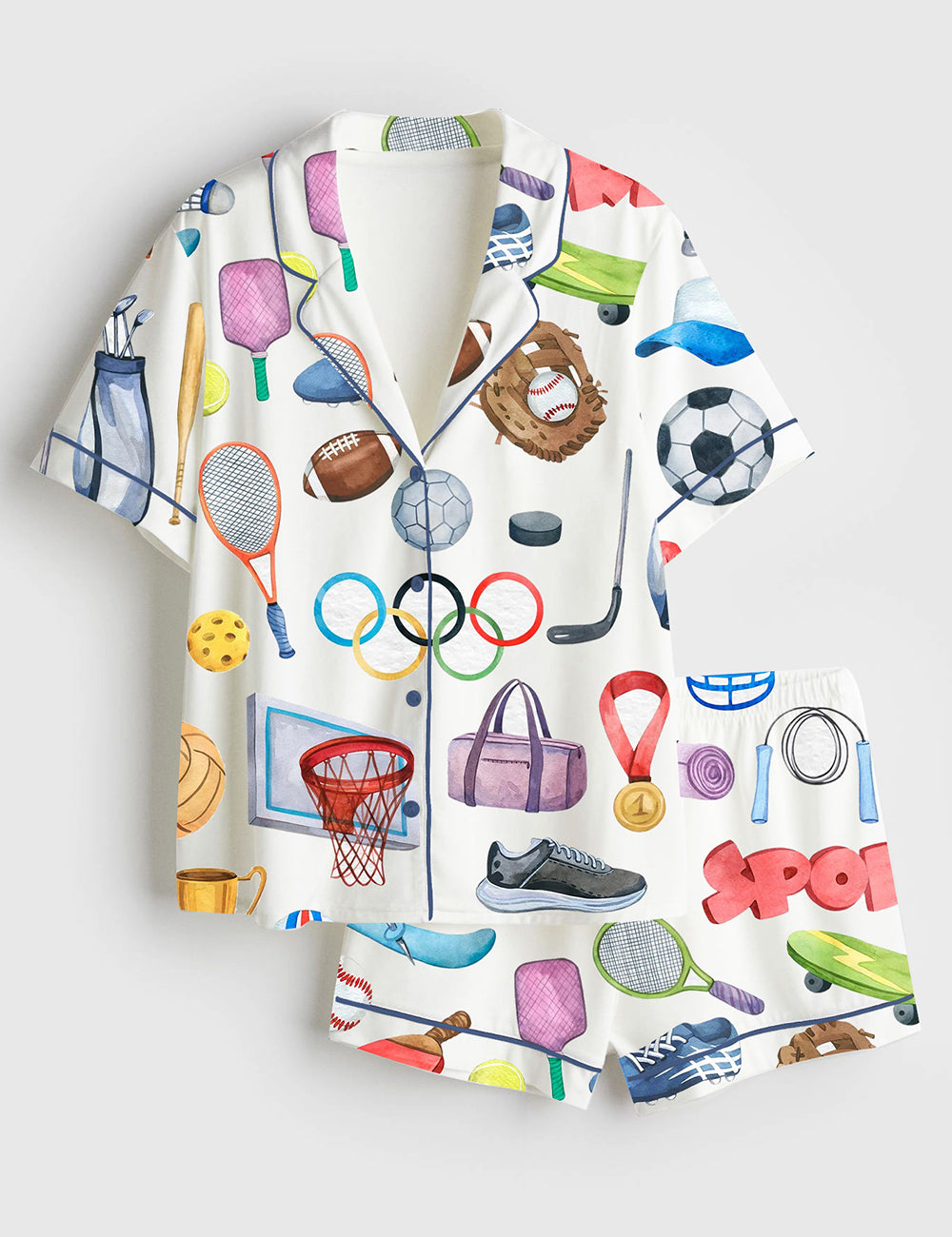 Women's Watercolor Sports Basketball Football Golf Short Sleeve Satin Pajama Set