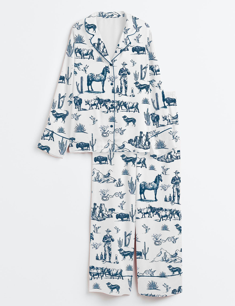 Women's Wild West Adventure Long Sleeve Satin Pajama Set