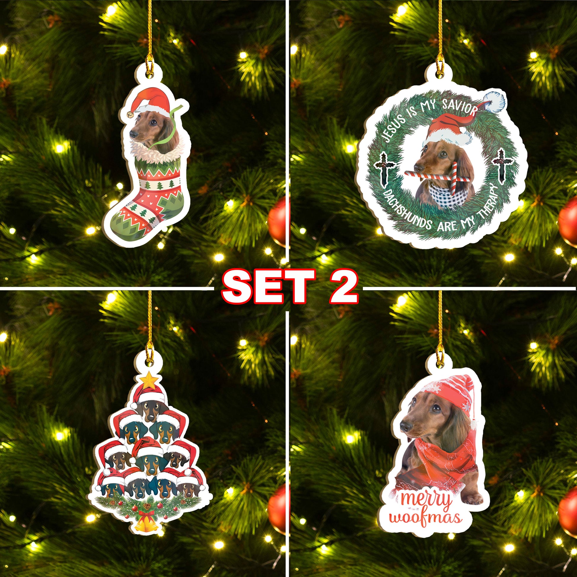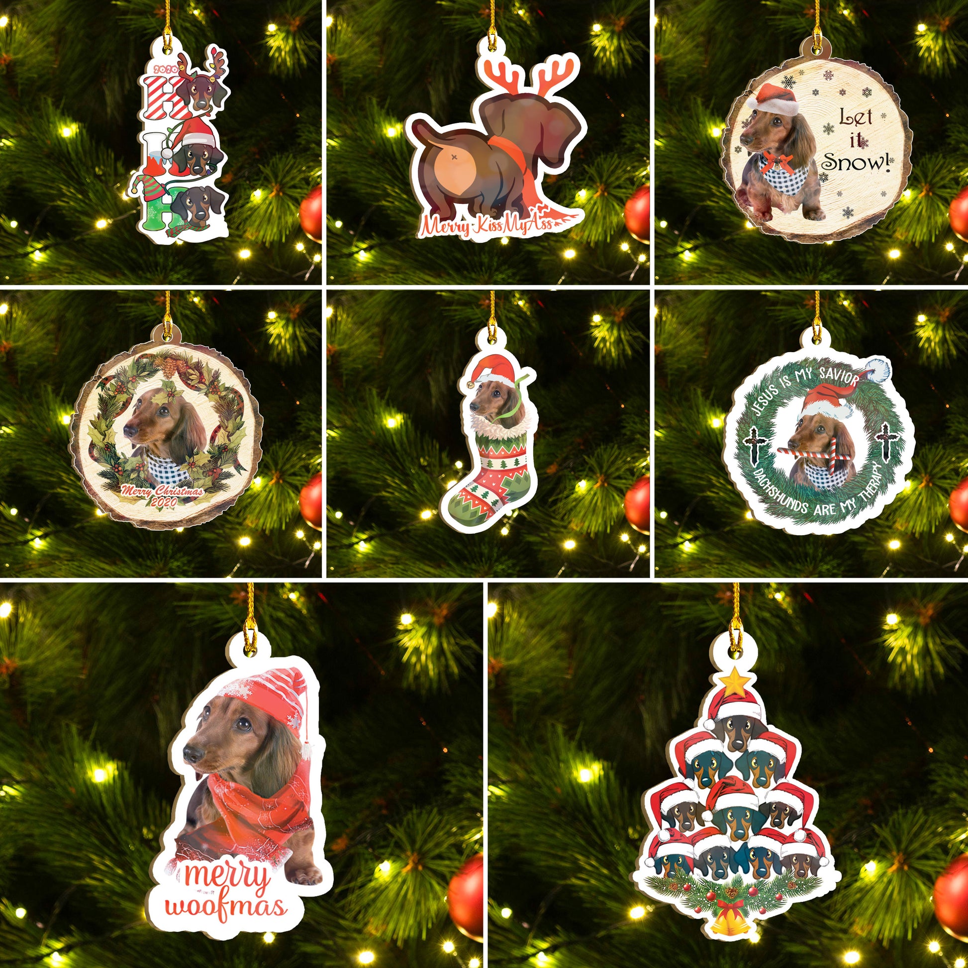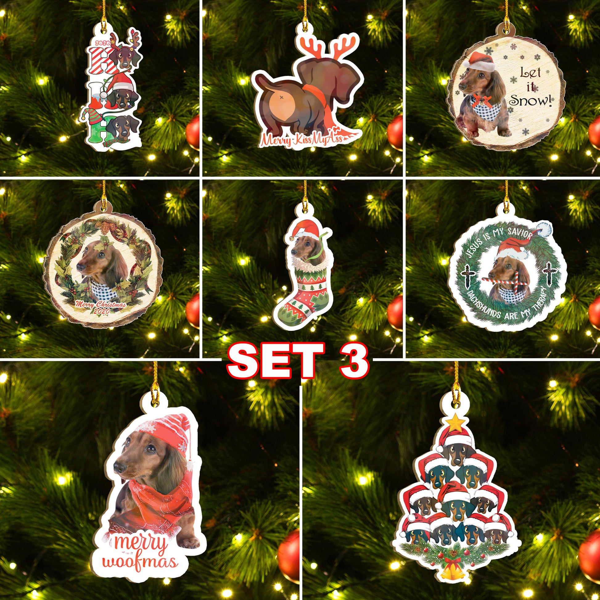 Xmas Dachshund Ornaments Set, Merry Woofmas Ornaments Set, Funny Christmas Ornaments Family Gift Idea For Dog Lover