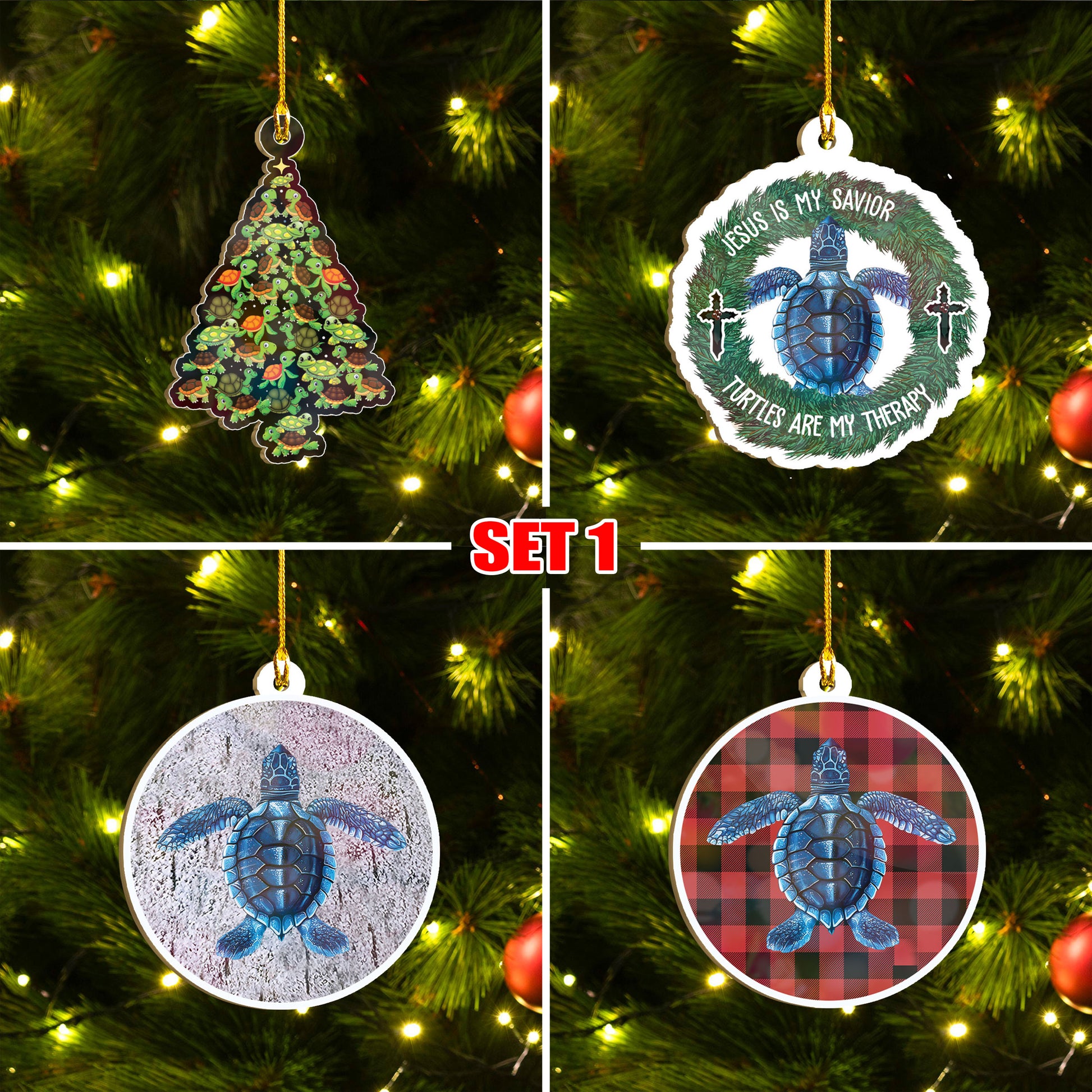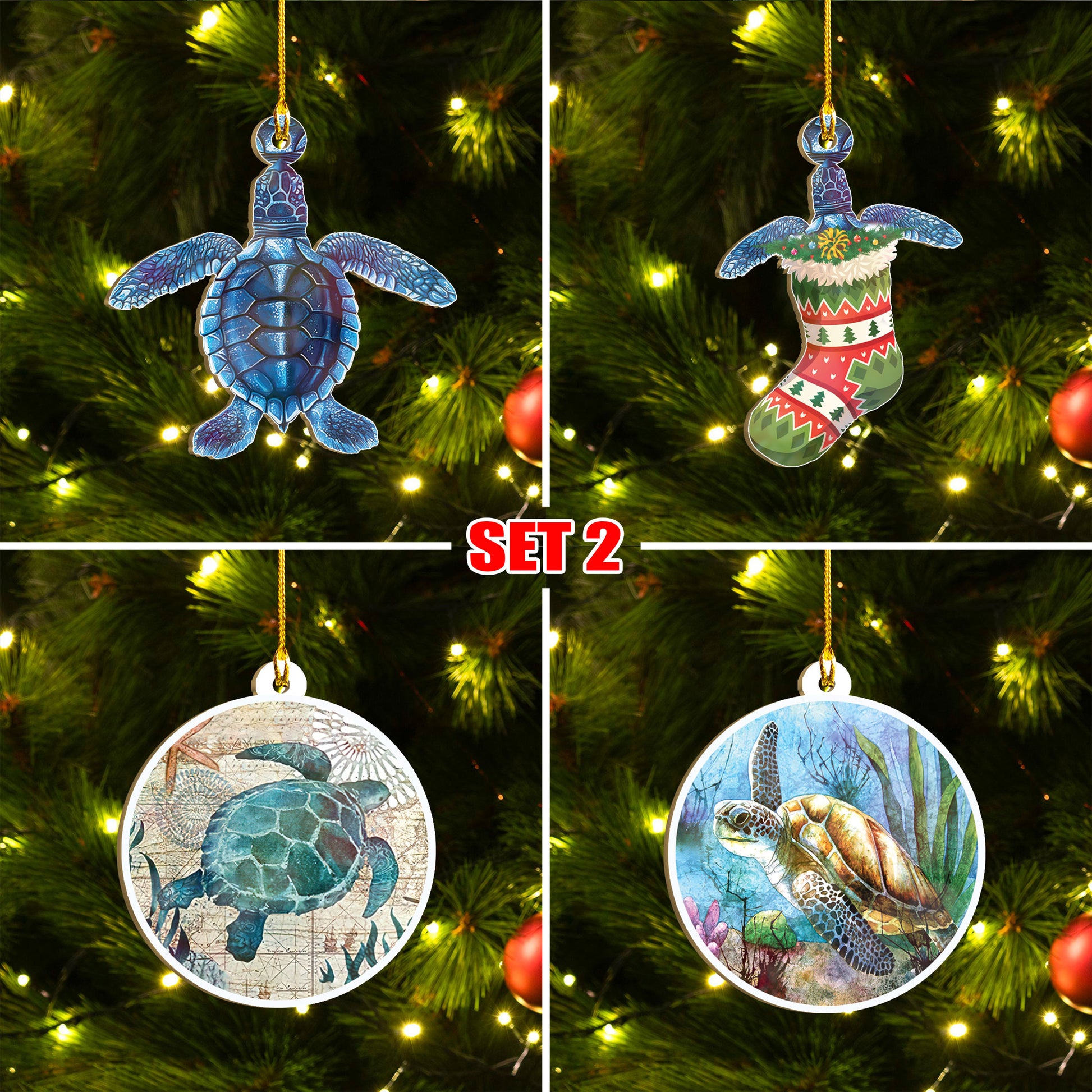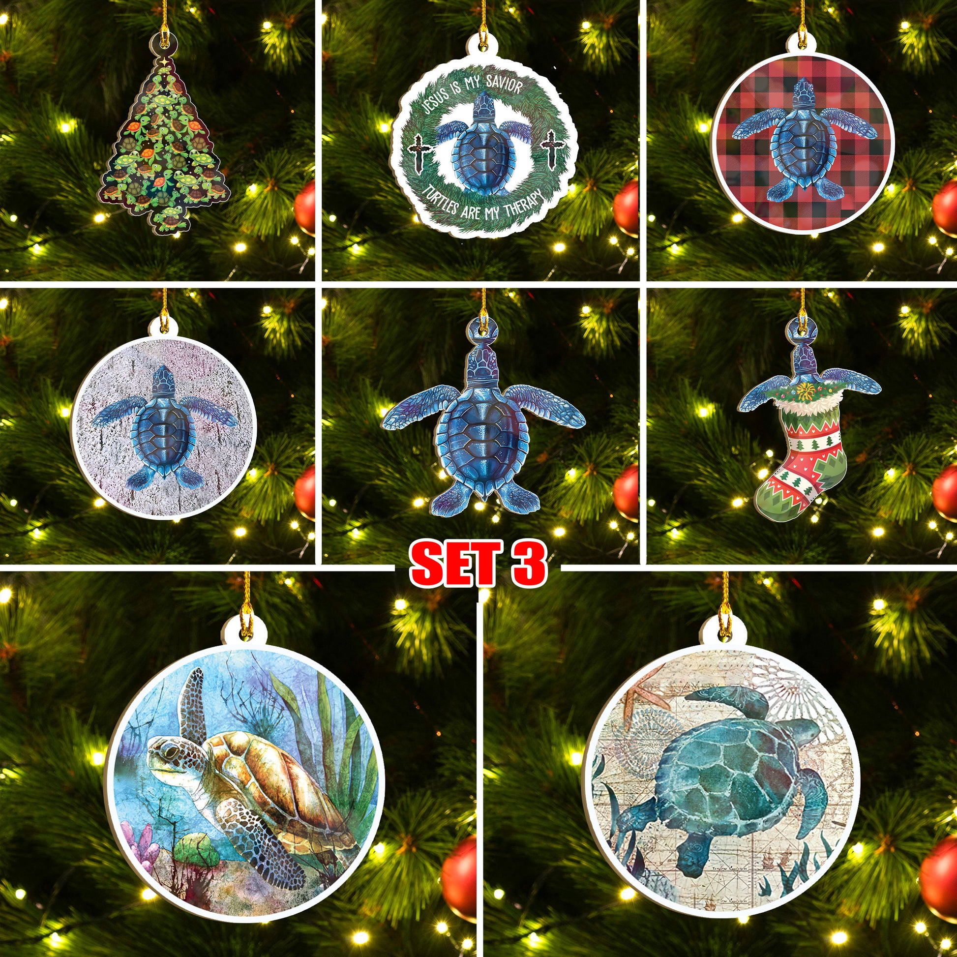 Xmas Turtle Ornaments Set, Merry Christmas Ornaments Set, Funny Christmas Ornaments Family Gift Idea For Turtle Lover