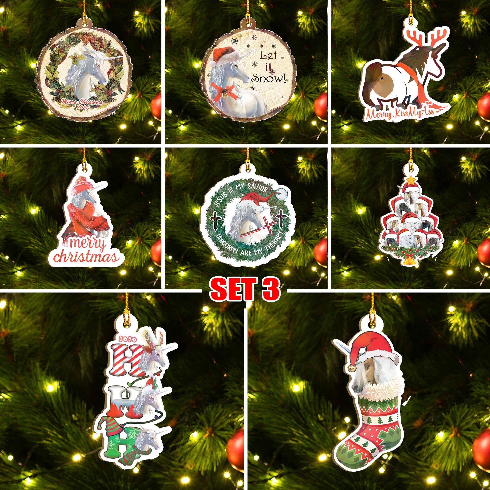 Xmas Unicorn Ornaments Set, Merry Christmas Ornaments Set, Funny Christmas Ornaments Family Gift Idea For Unicorn Lover