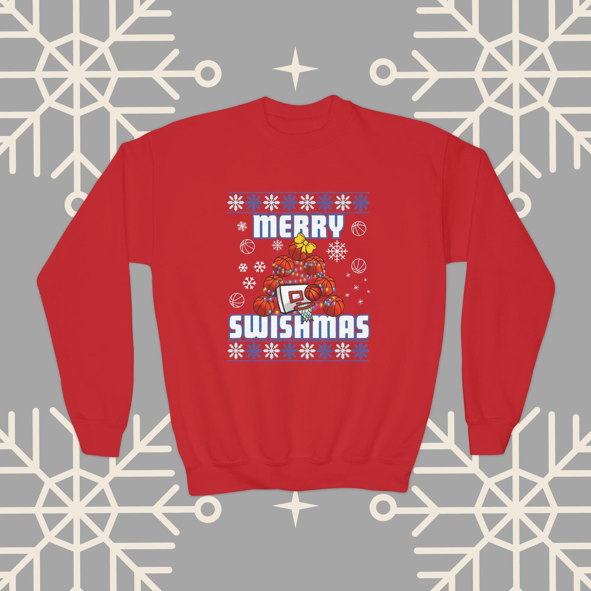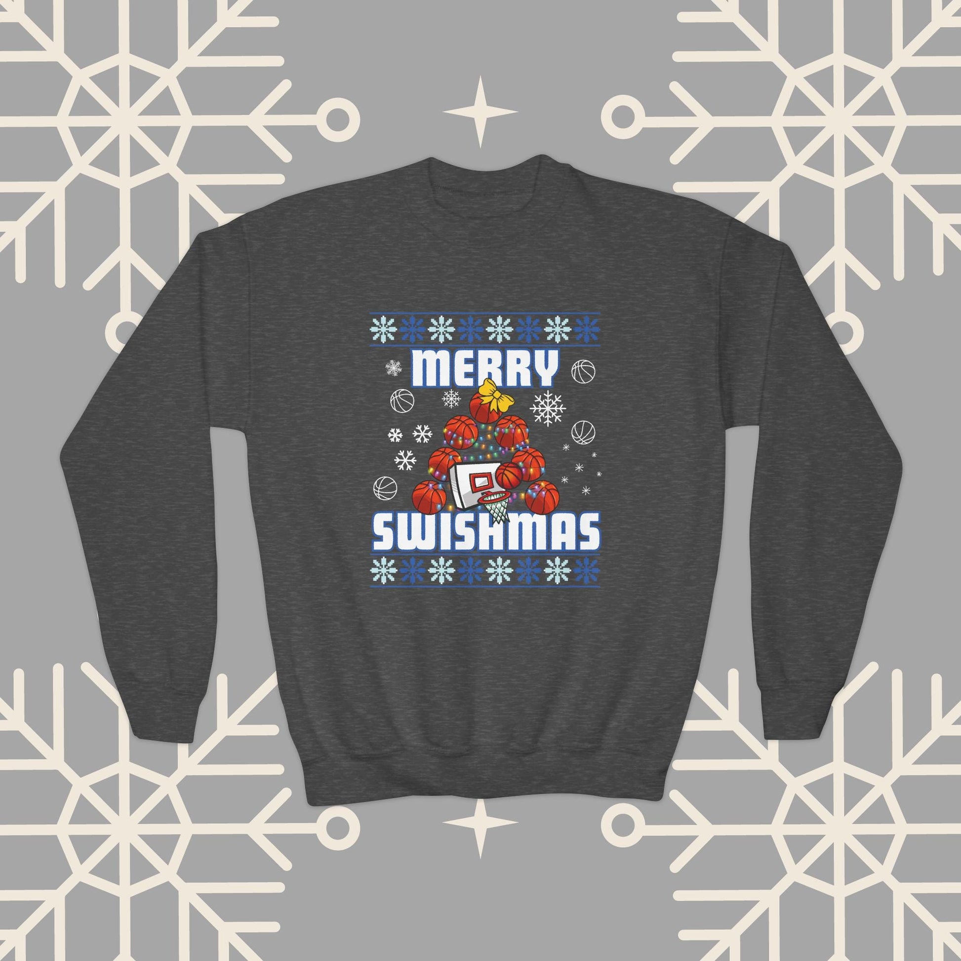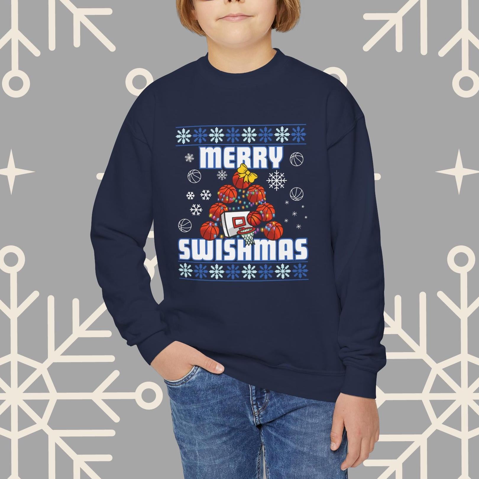 Youth Merry Swishmas Sweatshirt, Basketball Ugly Christmas for Kids, Basketball Gifts for Boys, Gift for Girl