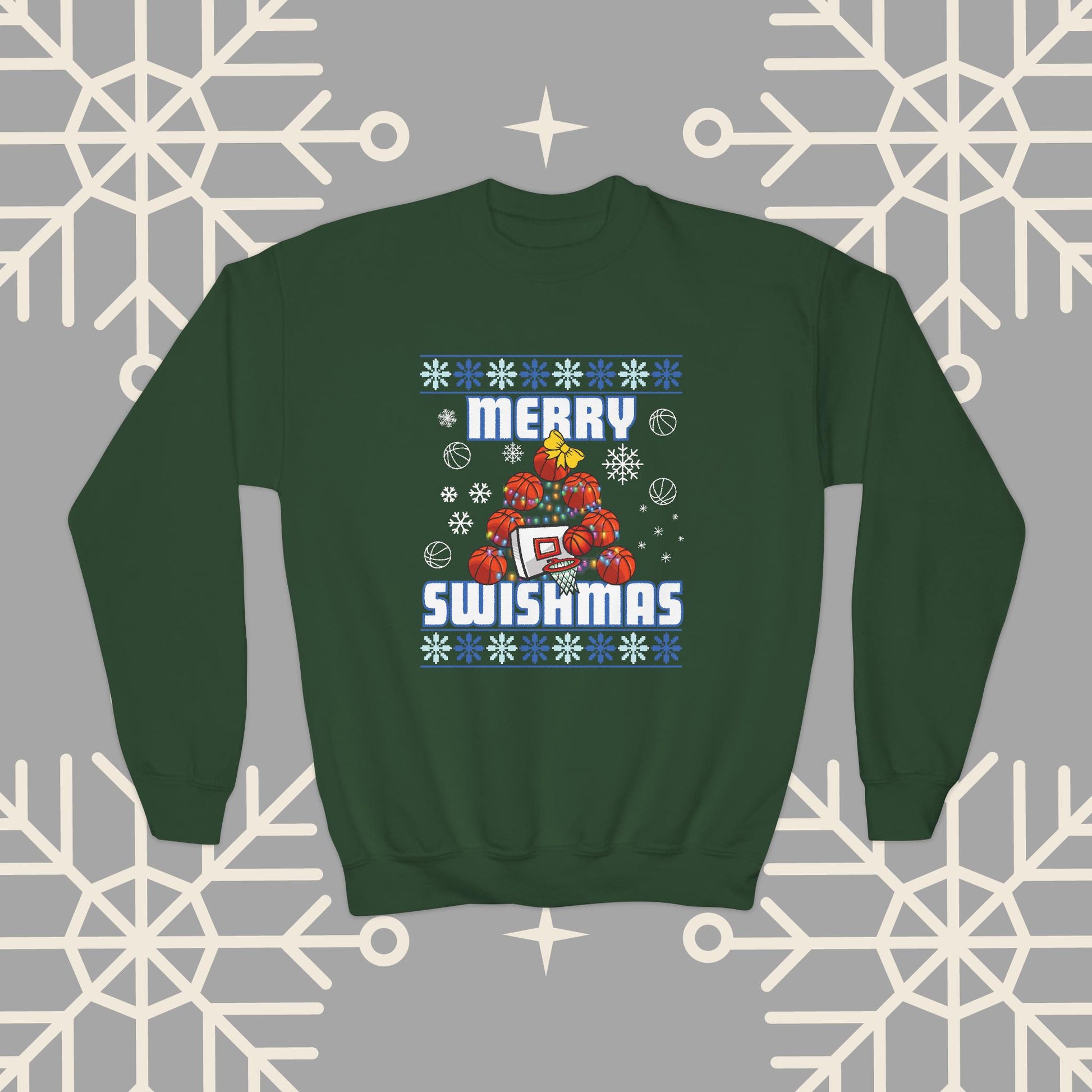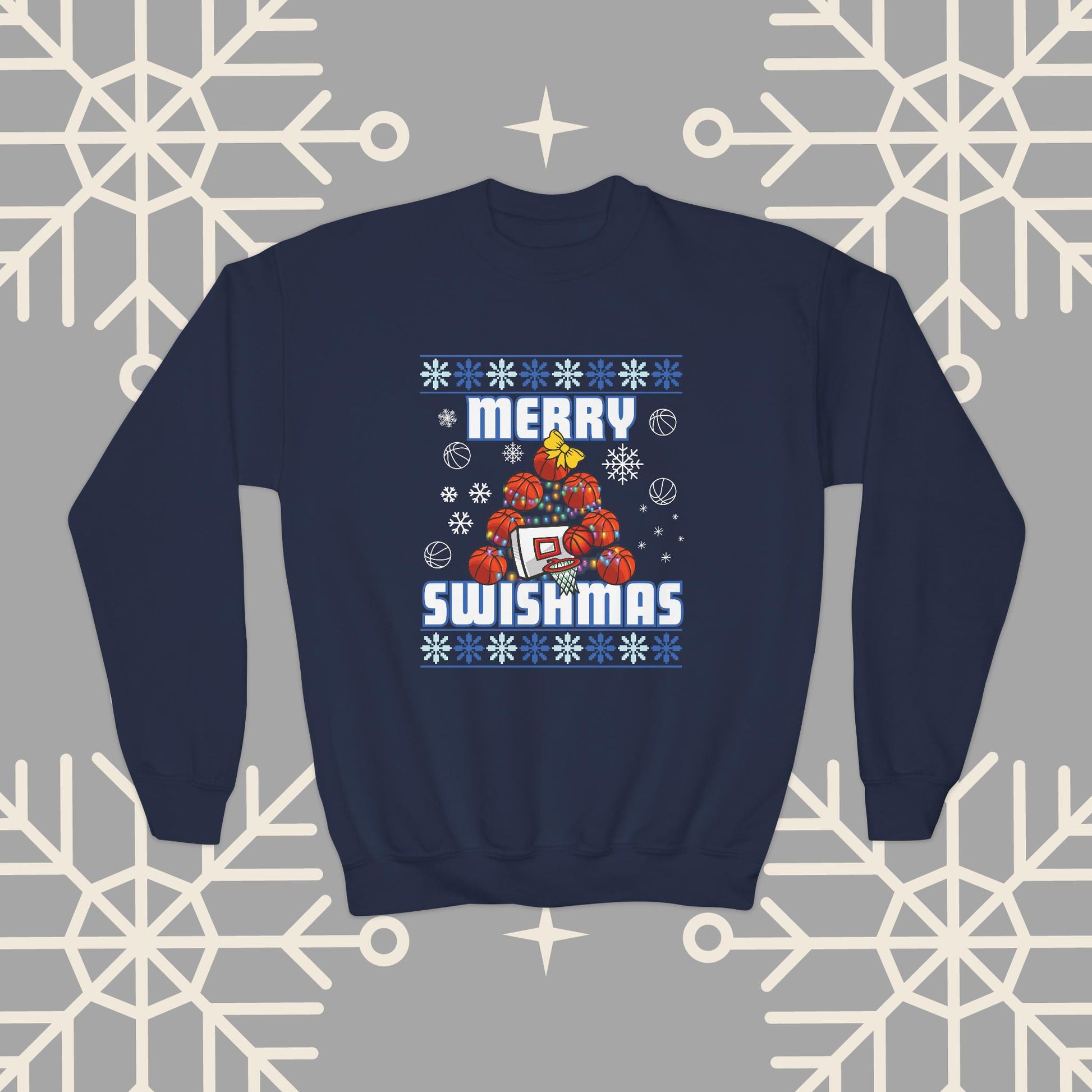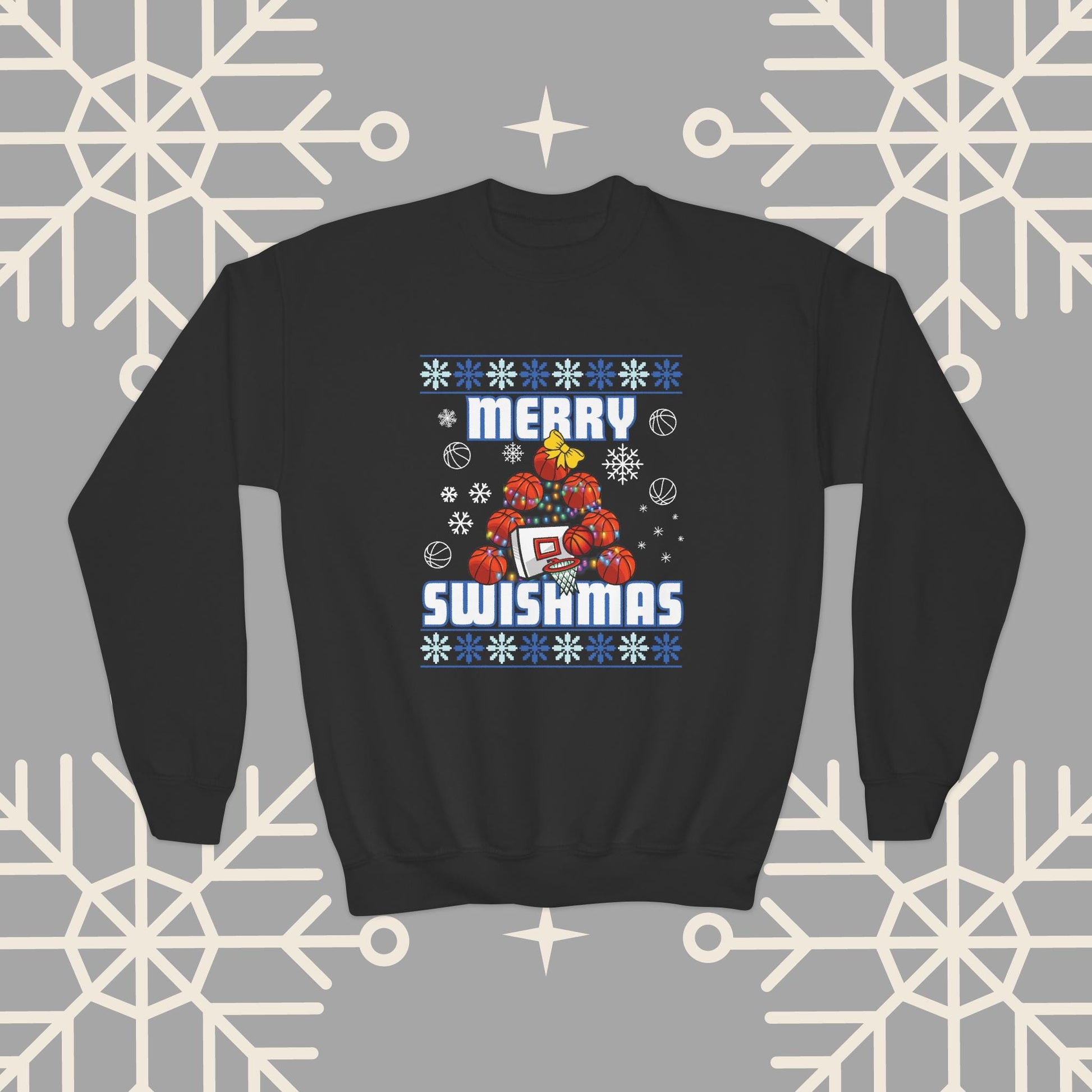 Youth Merry Swishmas Sweatshirt, Basketball Ugly Christmas for Kids, Basketball Gifts for Boys, Gift for Girl