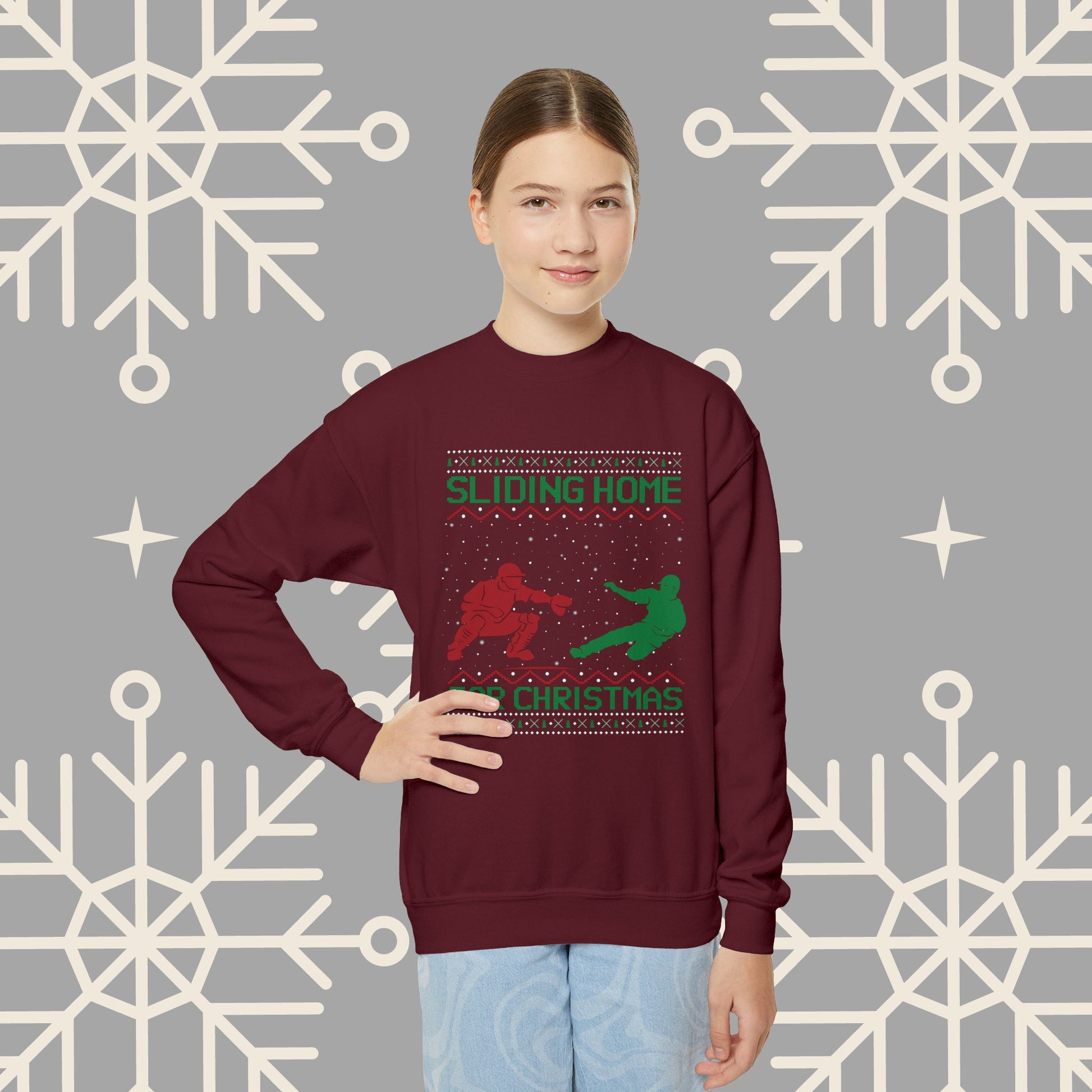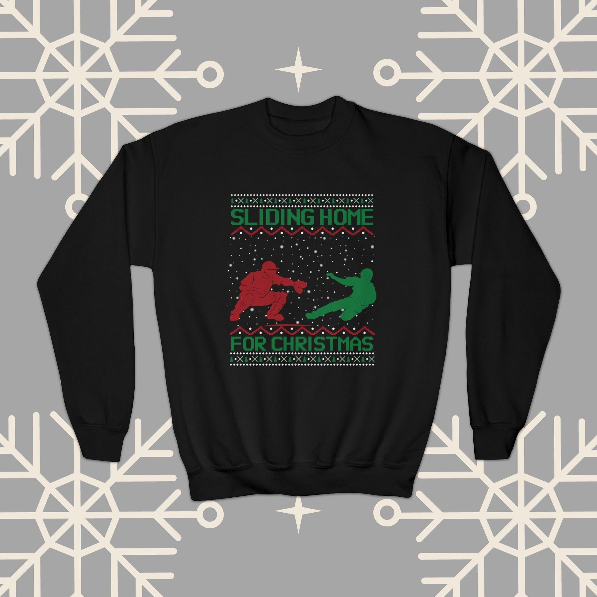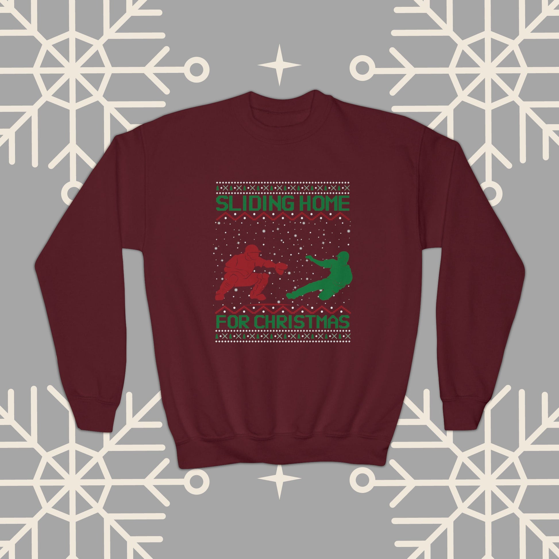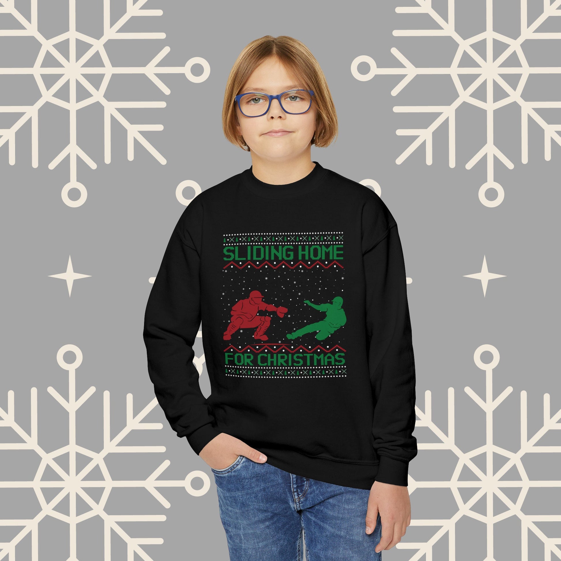 YOUTH Sliding Home for Christmas, Kids Baseball Christmas , Ugly Christmas , Funny Baseball Sweatshirt, Christmas
